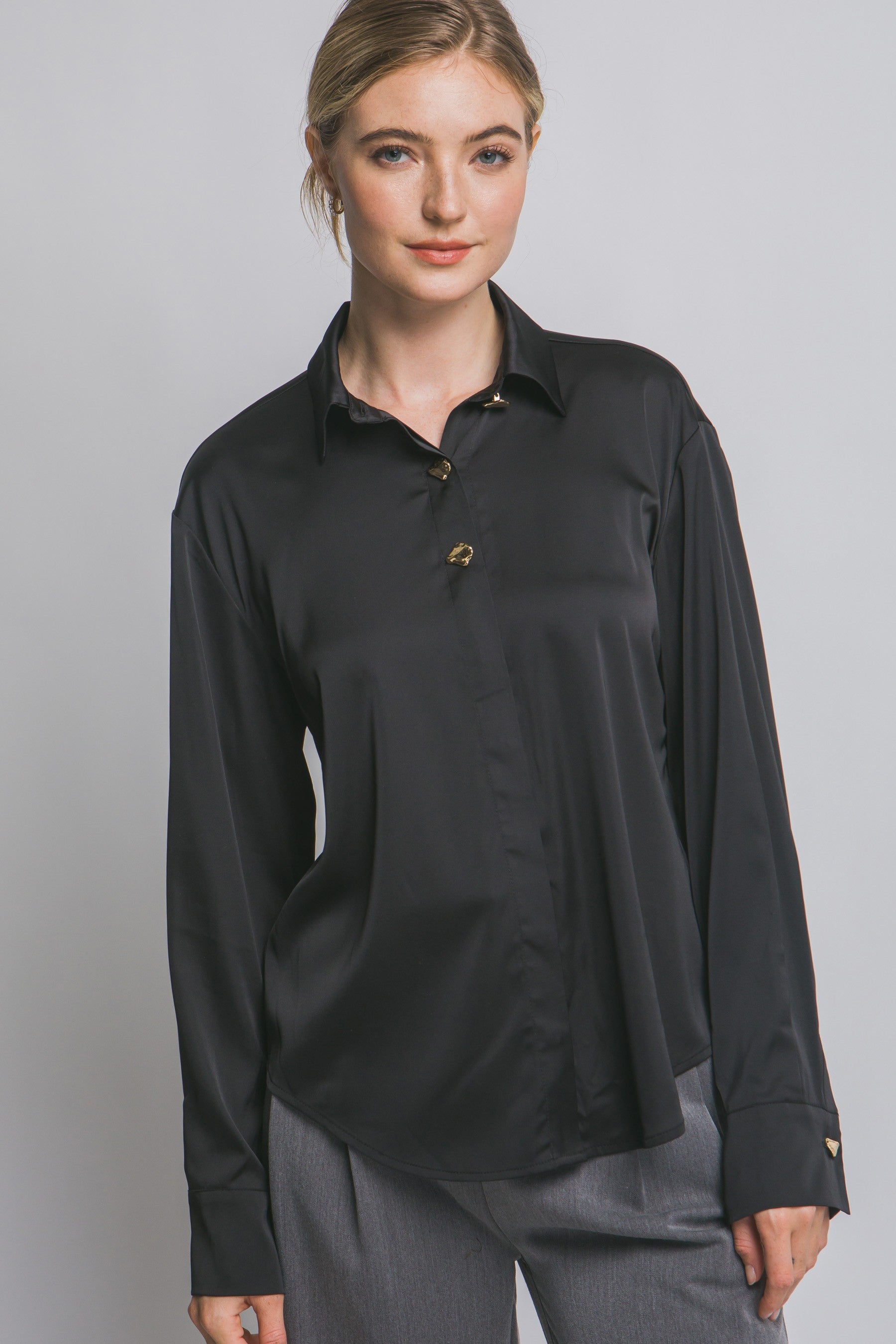 The Dexter Blouse features a discreet hidden button-down closure, offering a sleek and polished look. Its design ensures easy wear while maintaining a smooth, uninterrupted front for versatile styling. Comfortable and refined, this blouse is perfect for both professional and casual settings.
