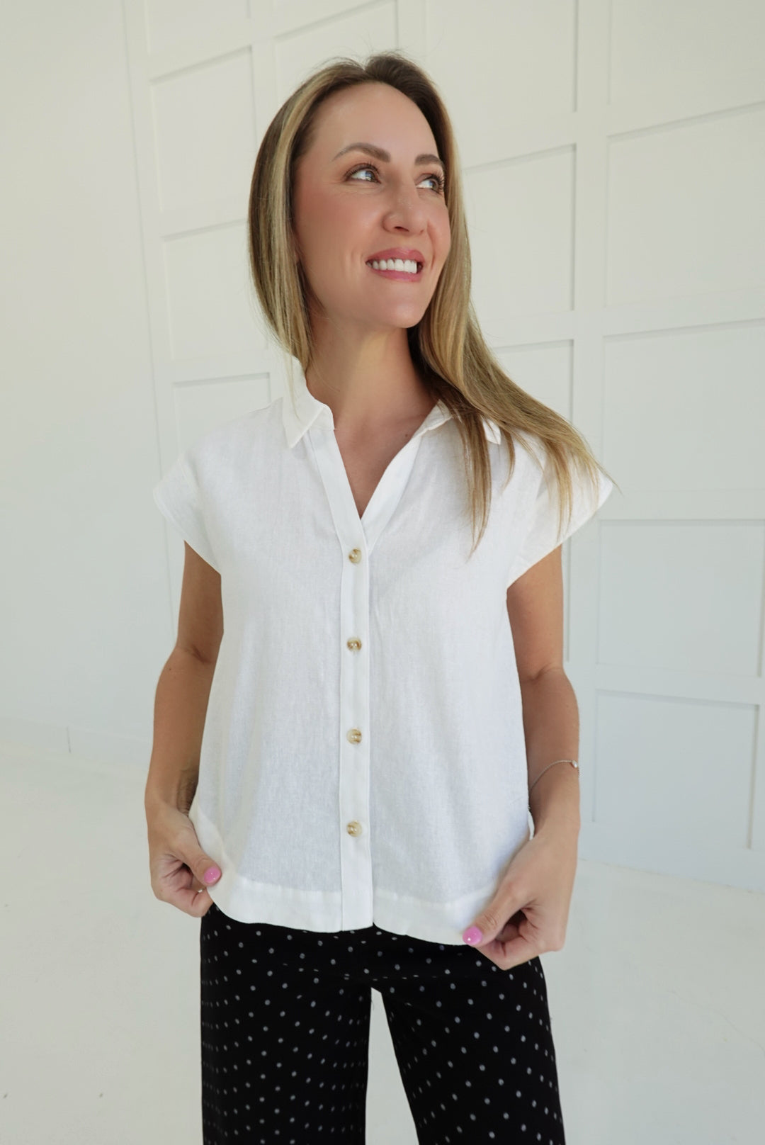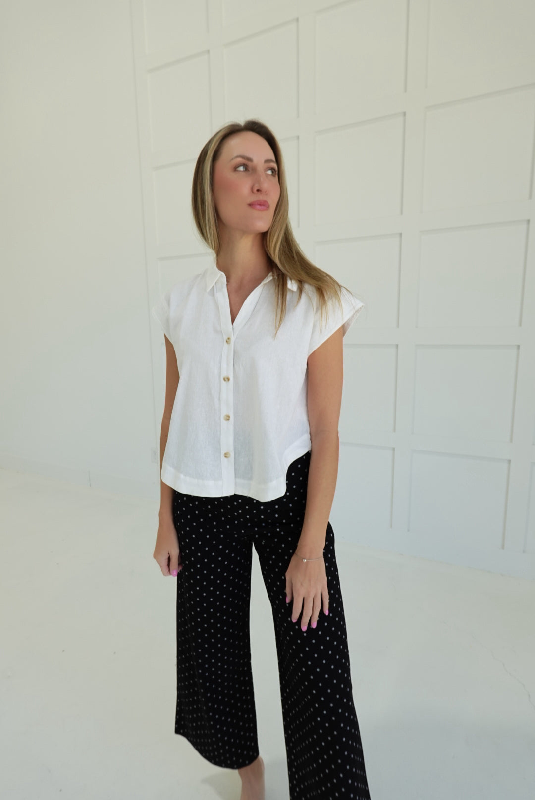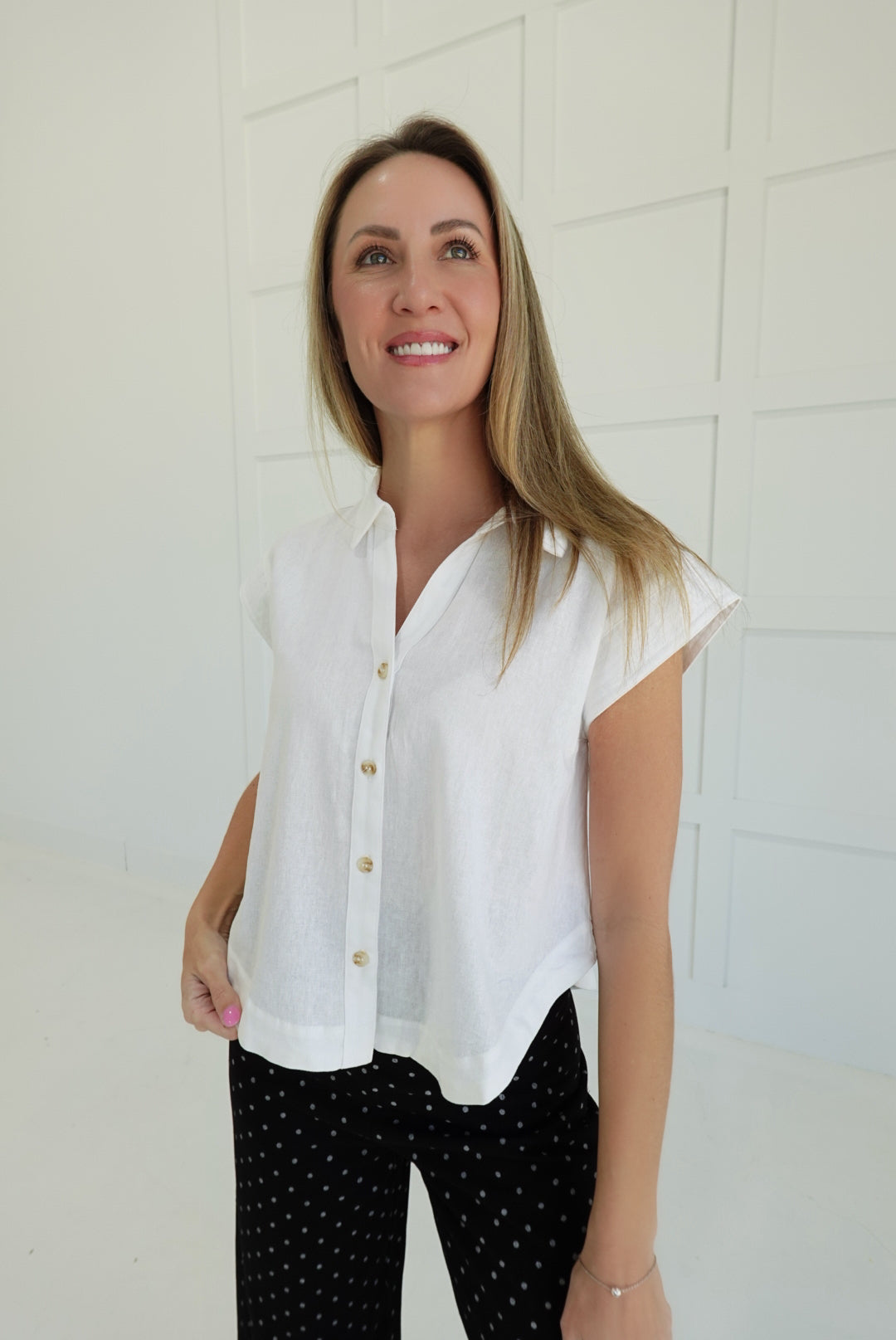 Unleash your edge with the Diana Top—a fearless take on the classic button-down. Sharp collar, crisp short sleeves, and a tailored silhouette that commands attention. Versatile enough to layer over a slip dress or wear solo, this piece refuses to play it safe. Perfect for those who know that timeless style isn't boring—it's bold.