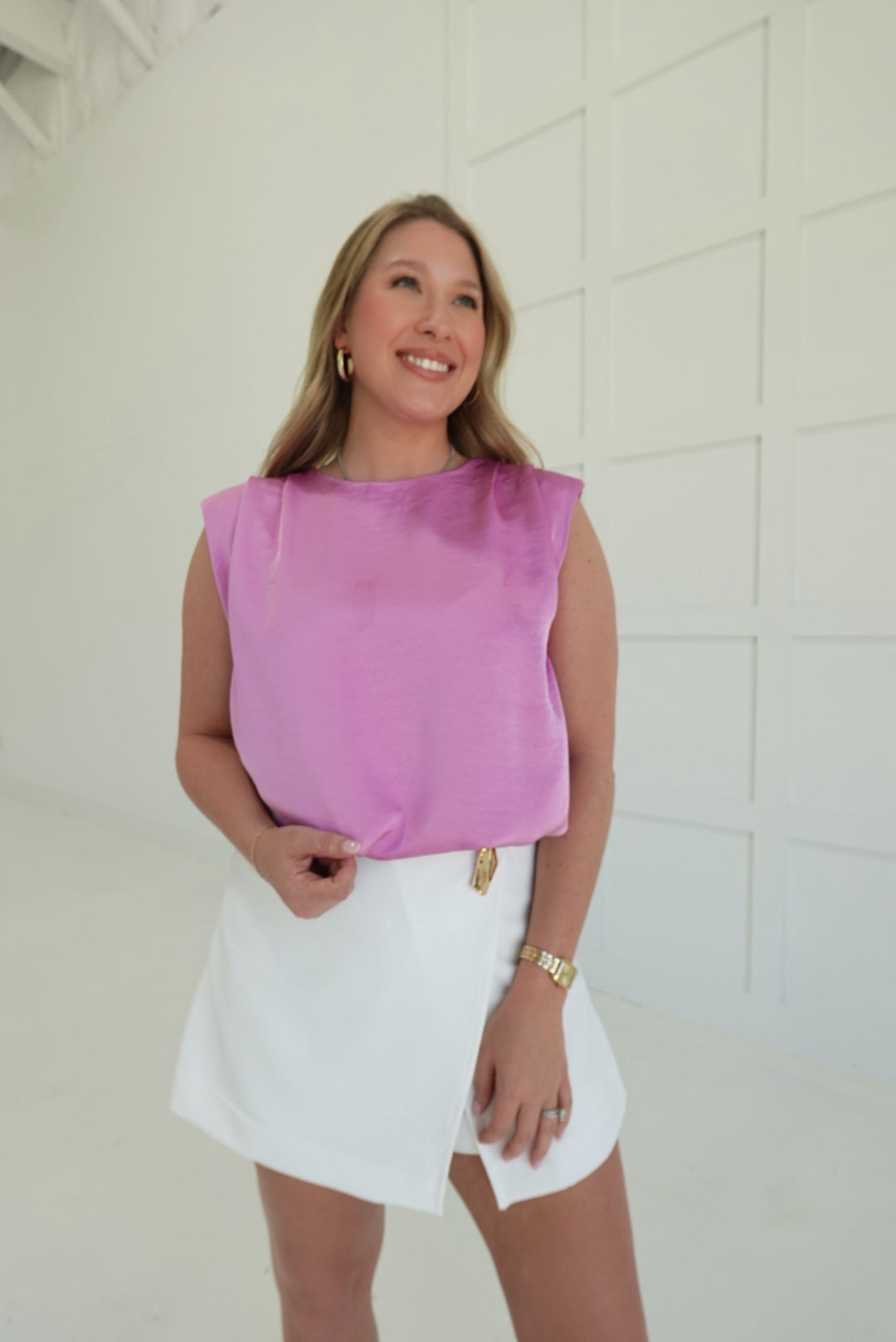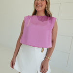 - Sleeveless Crop Top With Shoulder Pads
