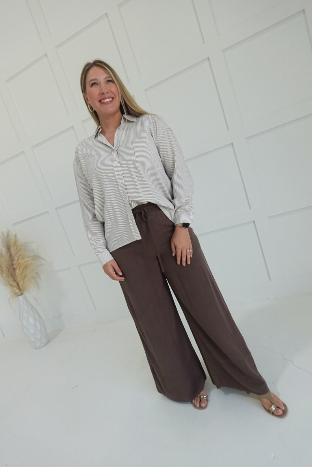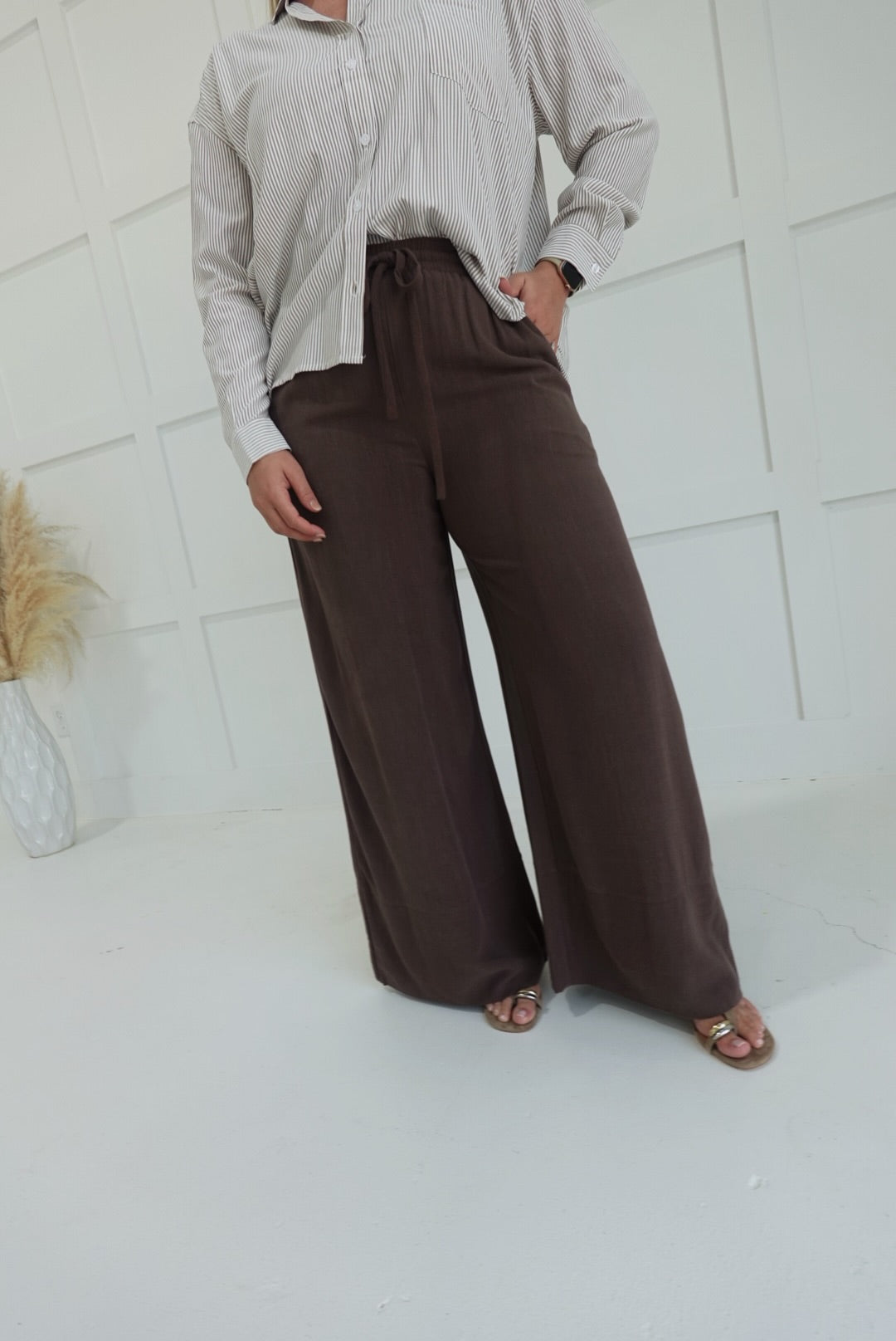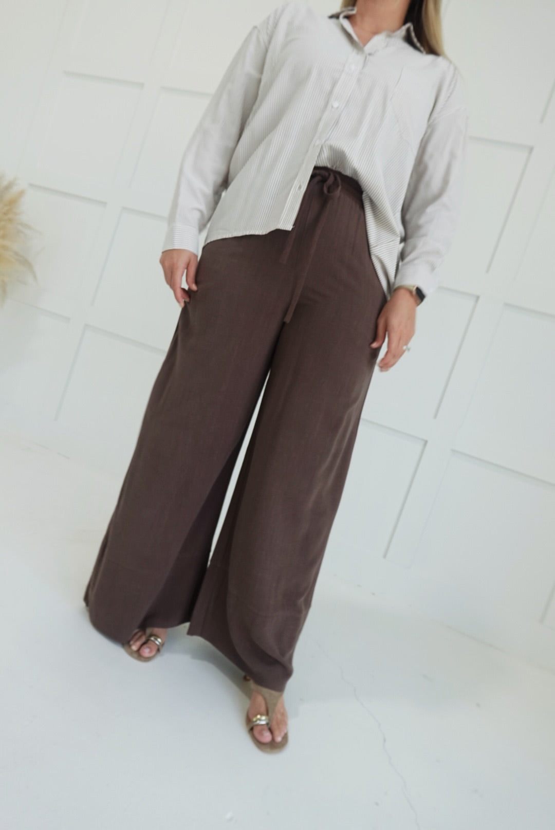 Experience comfort and style with the Divinity Wide Leg Pants, featuring a solid drawstring waist for an adjustable, secure fit. The wide leg design offers relaxed movement and breathability, making them perfect for everyday wear or casual outings. These pants combine ease and elegance effortlessly to support your active lifestyle while keeping you comfortable all day long.