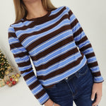 Stay comfortable and stylish in the Dominique Striped Top, featuring a cozy knit fabric with a classic long sleeve design. Its multi-stripe pattern in dark brown and blue adds a subtle yet sophisticated touch, making it easy to pair with your favorite jeans or trousers. This top offers a gentle fit that supports your daily activities while keeping you warm, ideal for layering or wearing on its own throughout cooler days.