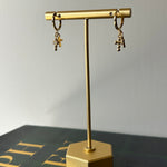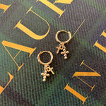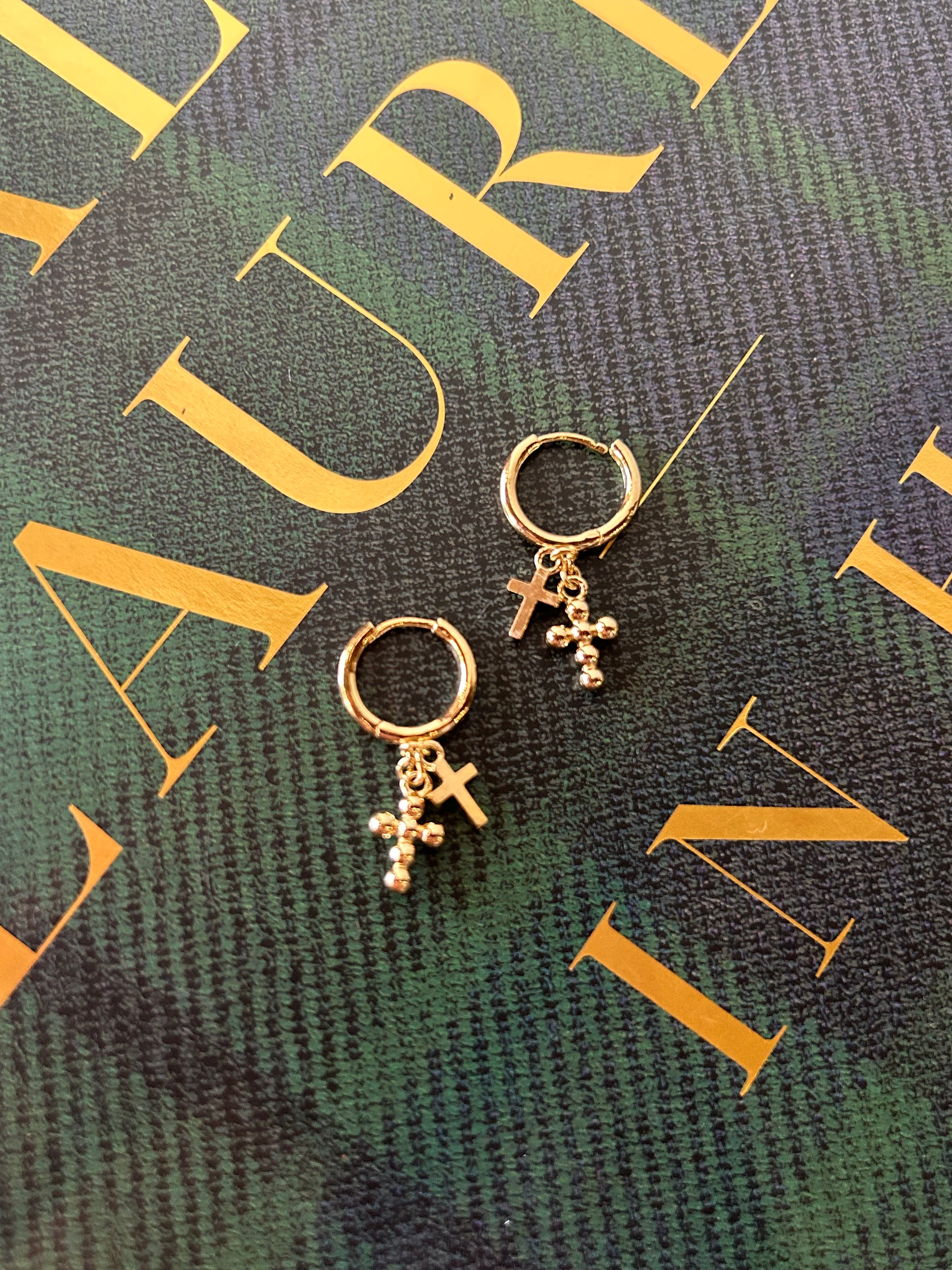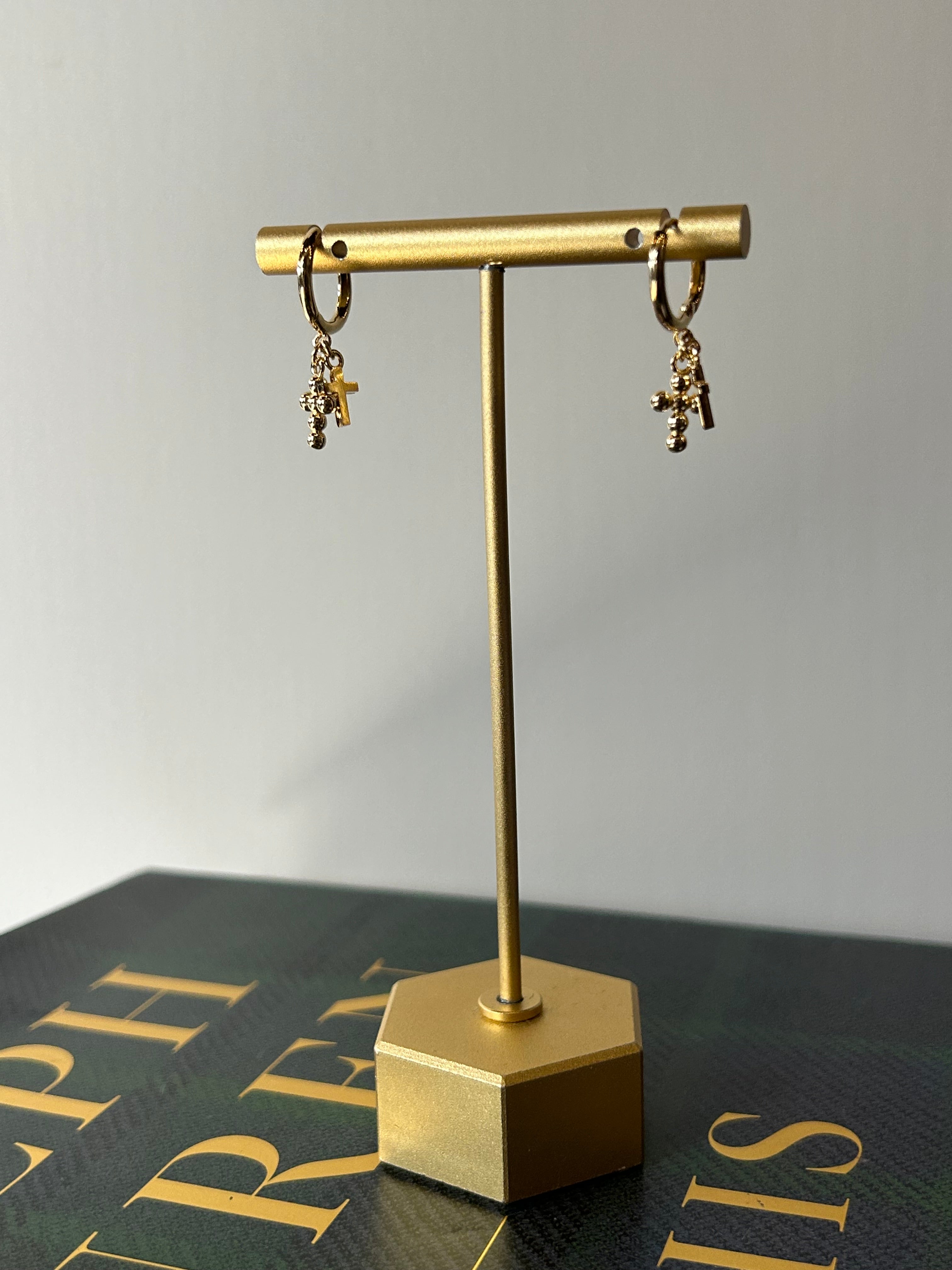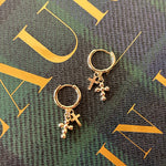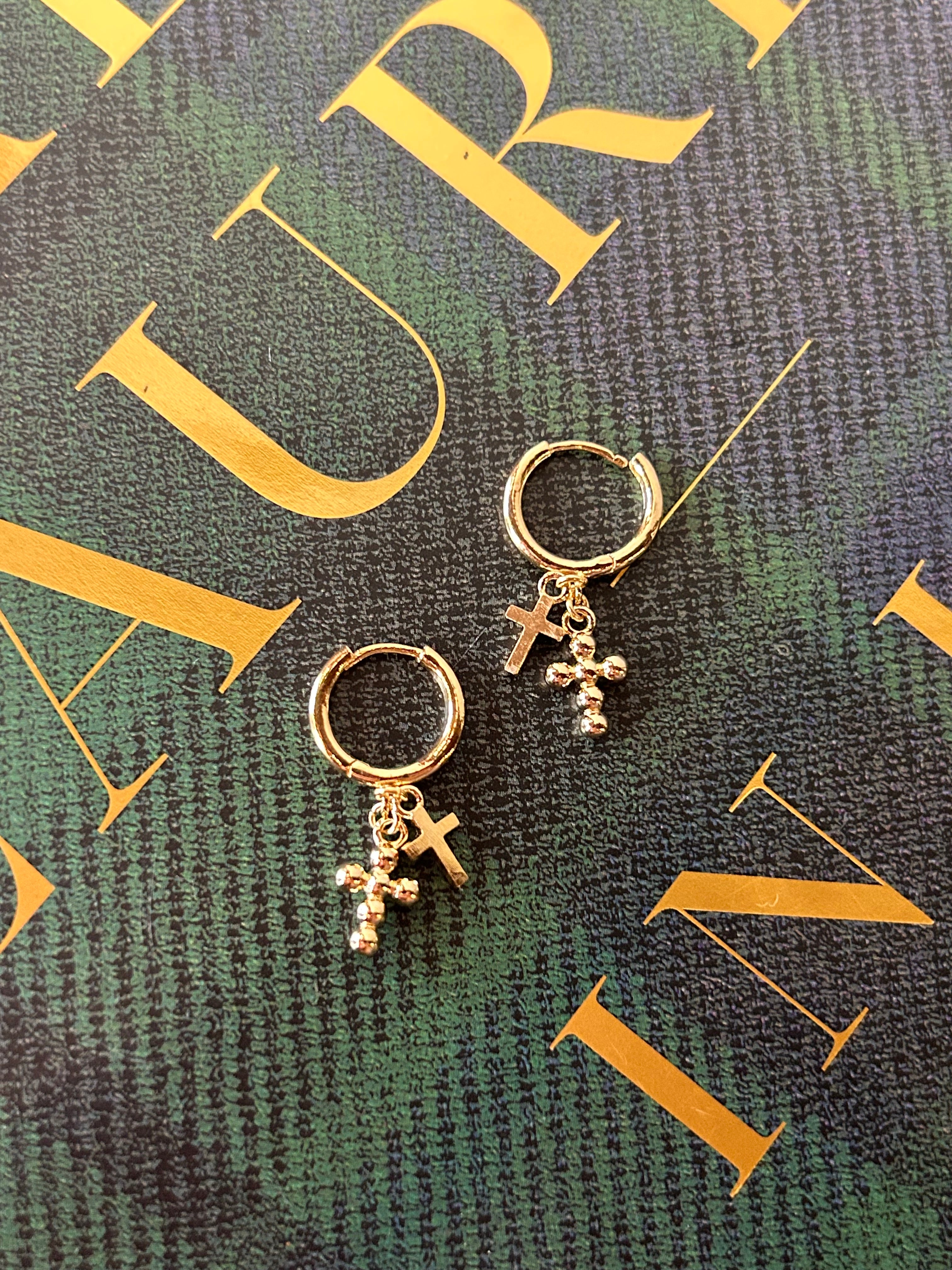 Double Cross Huggies Elevate your everyday style with these stunning double cross charm huggies. Featuring delicate cross charms that dangle gracefully from secure huggie-style earrings, this piece brings spiritual elegance and timeless appeal to any look. The supportive design keeps your ears comfortable throughout the day, while the meaningful symbolism adds depth to your personal expression. Perfect for layering with other pieces or wearing solo, these huggies are a versatile addition to your jewelry collection that celebrates both faith and fashion.