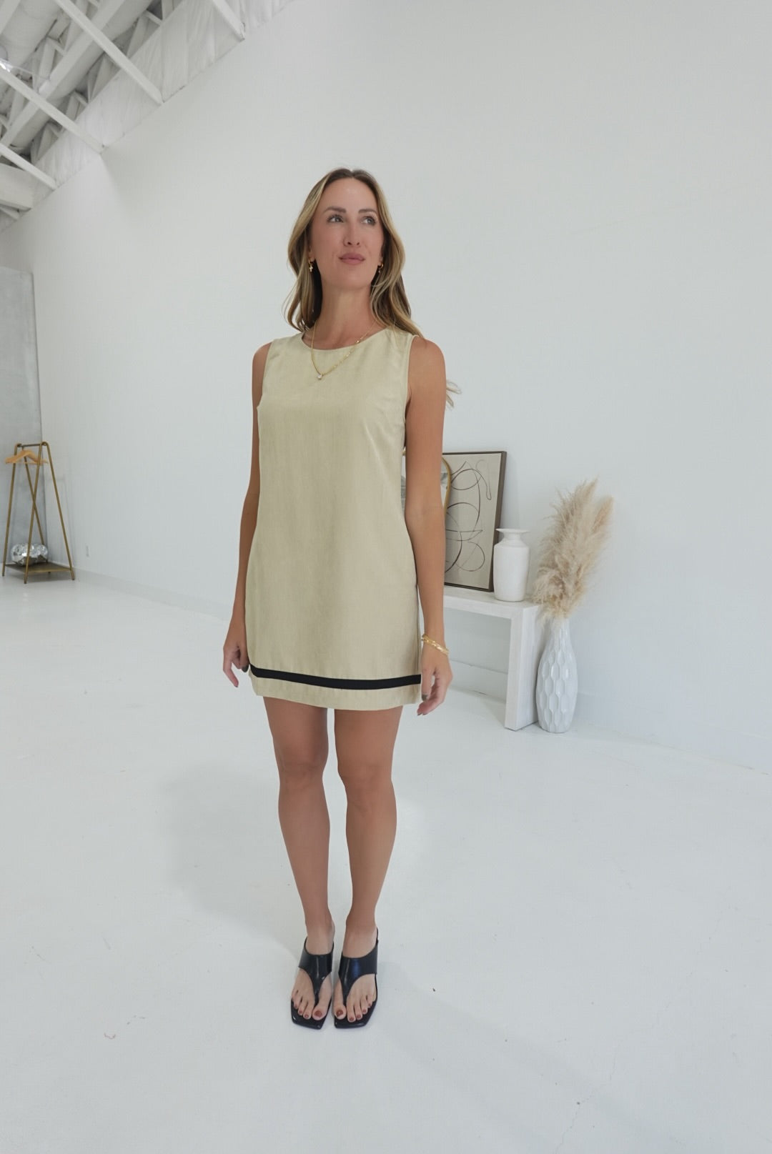 - Two-Tone Mini Matte Shift Dress
