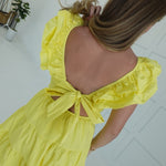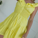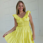 The Double Trouble Mini Dress features a flattering double ruffle design and a smocked waist that enhances your silhouette with comfort. Its tiered skirt adds playful movement, while the charming bow tie back offers a sweet, feminine touch. Perfect for any occasion, this dress combines style and ease to make you feel confident and beautiful.
