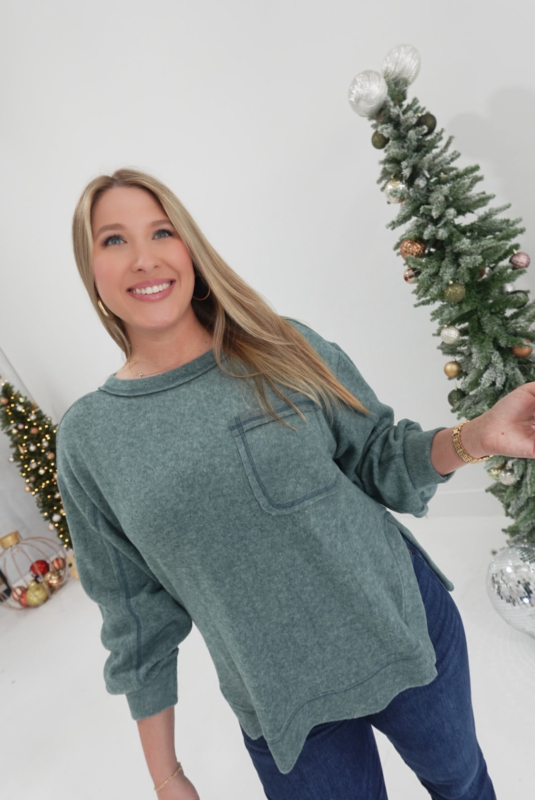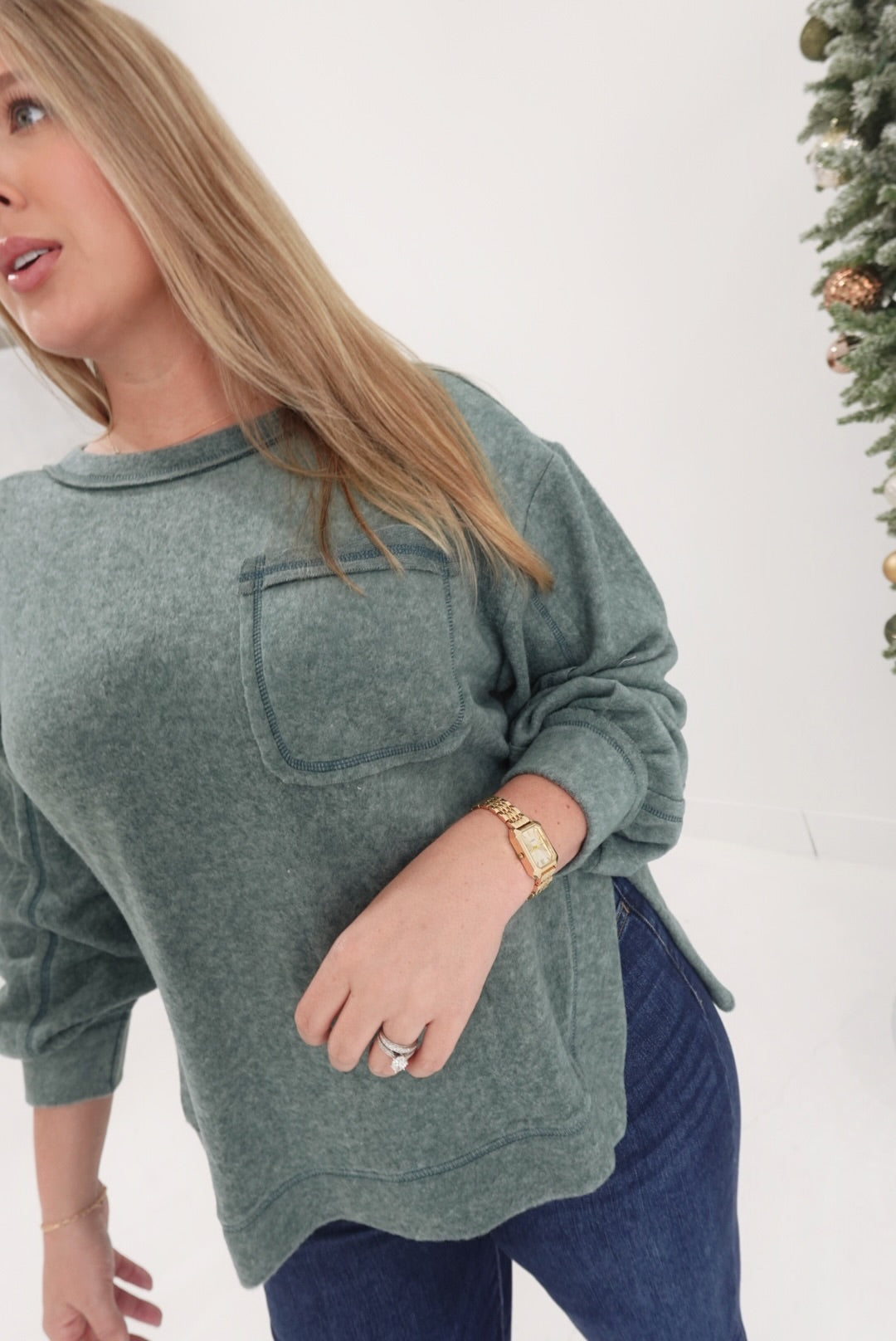 Experience cozy comfort with the Drew Pocketed Sweater, featuring a soft brushed hacci fabric that feels gentle against your skin. Its hi-low hem and side slits offer a relaxed fit that moves with you, while the round neck adds classic style. Perfect for layering or wearing on its own, this sweater combines warmth and ease for your everyday wardrobe.