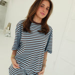 Drew Striped Set - Blue/Brown Embrace effortless cool with this daring two-piece set that refuses to play it safe. The oversized boxy top pairs bold blue and brown stripes with a relaxed silhouette that moves with you, while the elastic-waist shorts deliver comfort without compromise. Real pockets mean you're never hunting for somewhere to stash your essentials. Perfect for those who'd rather turn heads than blend in—throw it on and own the room.