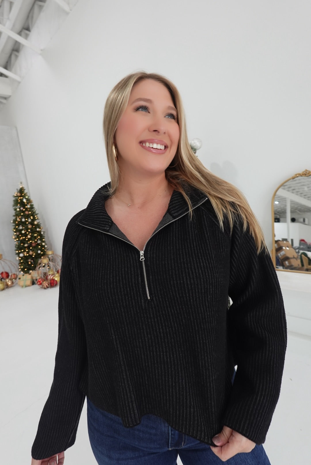 - Two-Tone Half Zip Sweater