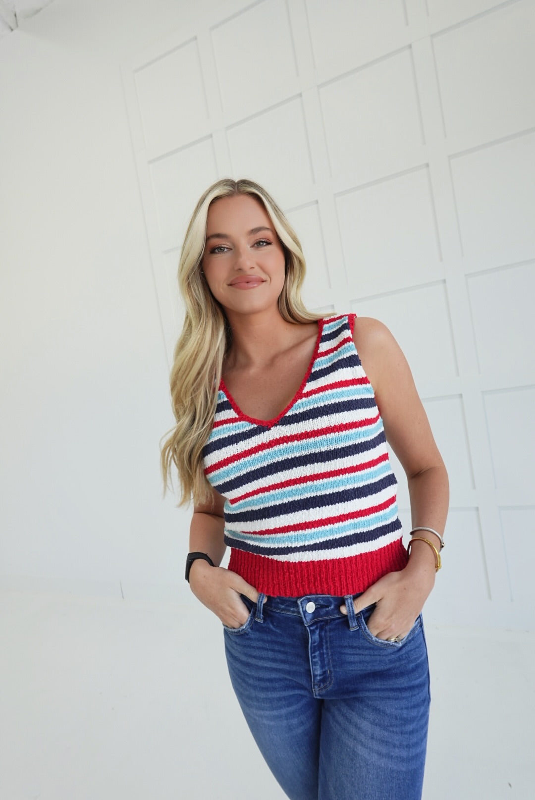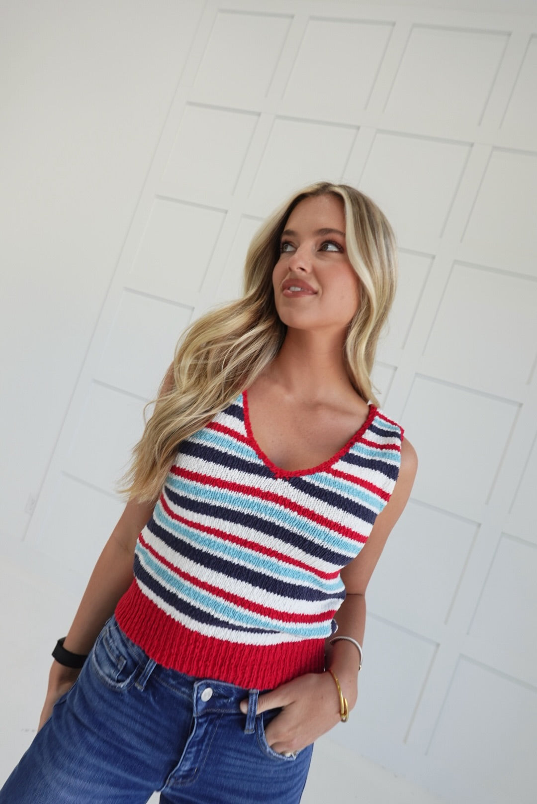 The Easy Peasy Sweater Top combines cozy comfort with a fresh coastal stripe design, making it an effortless choice for layering or wearing on its own. Its soft knit fabric gently hugs your silhouette, providing warmth without weight, while the tank style keeps your look light and breezy. Perfect for transitioning through seasons, this versatile top supports your active lifestyle with ease and style.