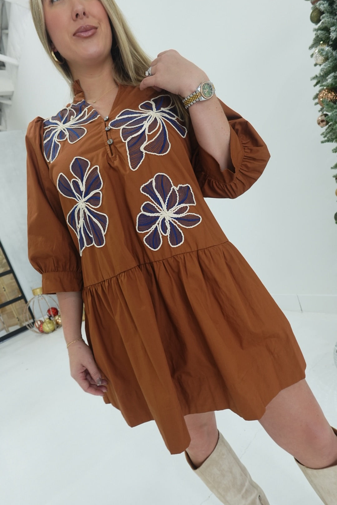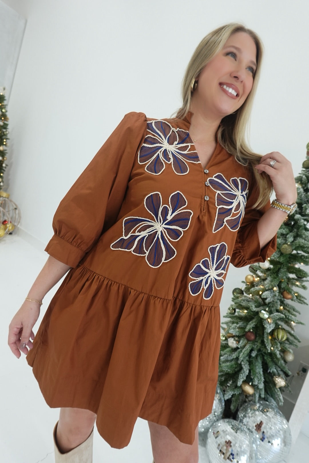This Floral Embroidered Effortless Edge Mini Dress blends delicate design with practical comfort. Its 3/4 sleeves and ruffled band collar highlight a flattering V-neck with partial button closure, while side pockets add convenience. Crafted from a lightweight, lined woven fabric, it ensures coverage without sheerness. Perfect for occasions where style meets ease, this dress supports your confident, effortless look.