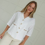 Upgrade your wardrobe with the Eleanor Linen Top! This top features a button down design and short sleeves for a chic and comfortable look. Made of high-quality linen, this top will keep you cool and stylish all day long. The perfect addition to any outfit!
