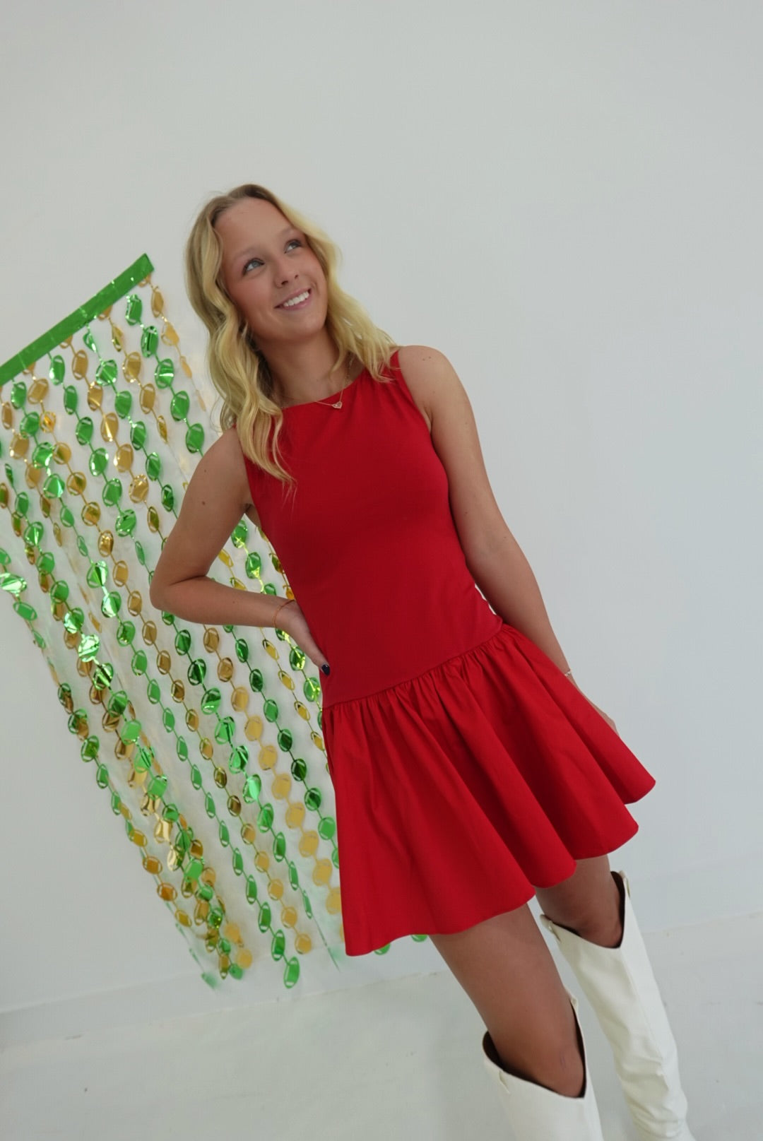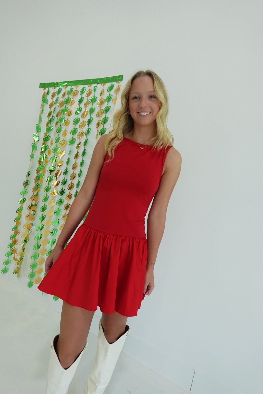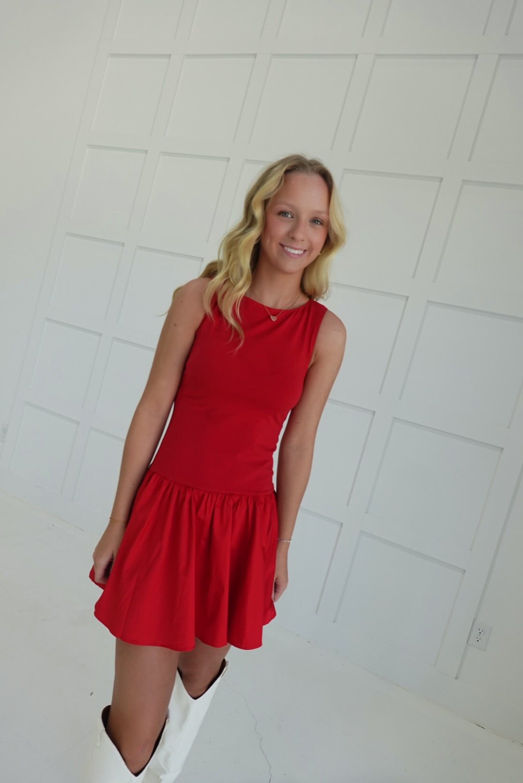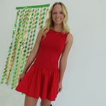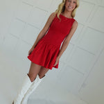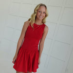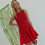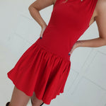 The Ellen Dropwaist Dress features a flattering round neckline and a playful dropwaist silhouette that enhances your natural shape. Its flounce hem adds a touch of feminine movement, making it perfect for both casual outings and special occasions. Comfortable and stylish, this mini dress is designed to support your confidence and effortless elegance.