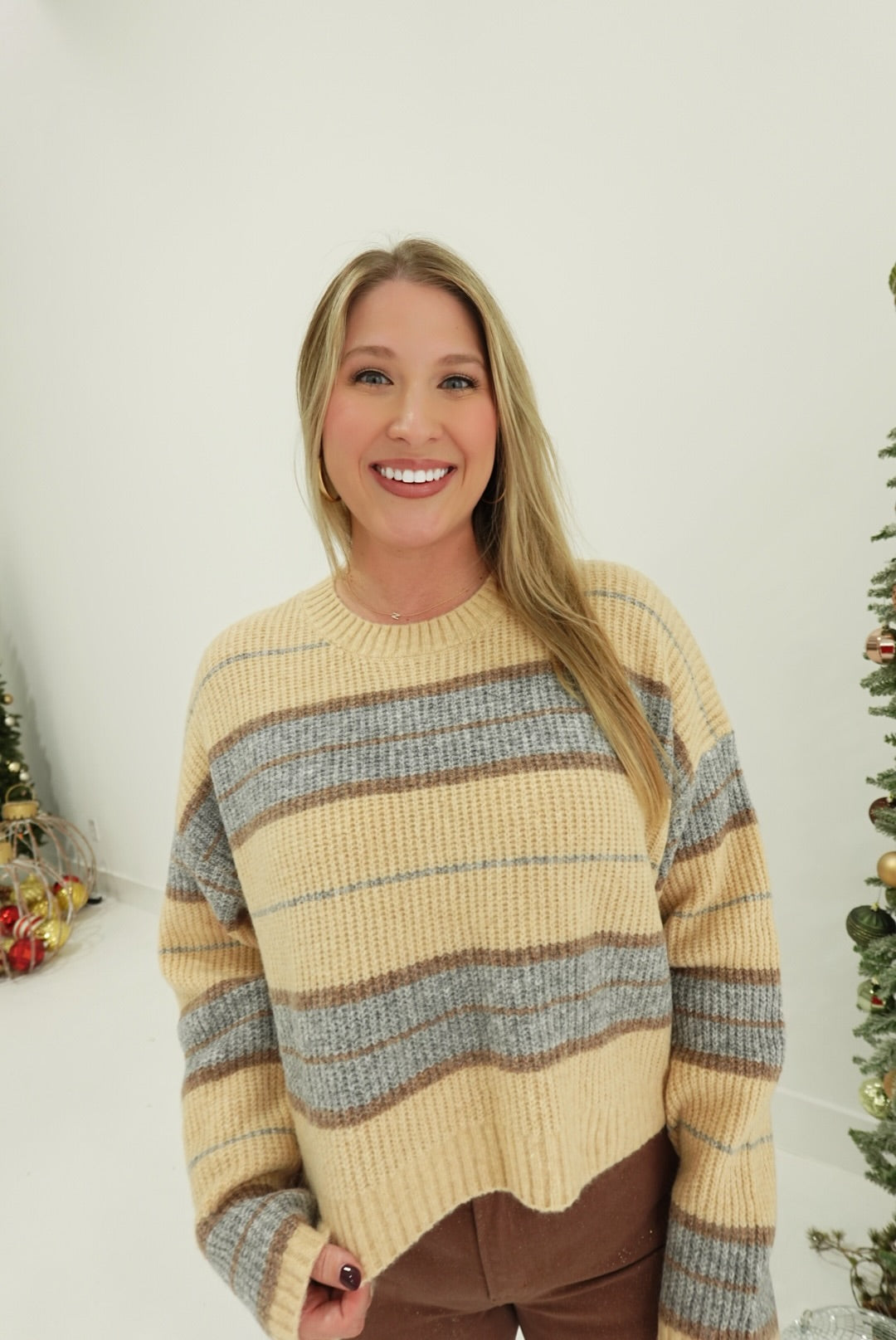The Empathize Sweater commands attention with its bold striped pattern and fearless silhouette. This oversized long sleeve design embraces cropped proportions for an unapologetically modern edge—perfect for those who refuse to blend in. The soft knit fabric drapes with effortless confidence, while the generous fit allows for layering without compromise. Whether styled solo or over fitted basics, this sweater makes a statement that says you're here to shake things up. Embrace the unexpected.