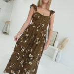 The Enchanted To Be Midi Dress features elegant floral jacquard detailing that adds a refined texture and visual interest. Its back tie design allows for an adjustable fit, combining style and comfort. Perfect for occasions where you want to feel both graceful and confident, this midi dress offers a flattering silhouette that moves beautifully with you.