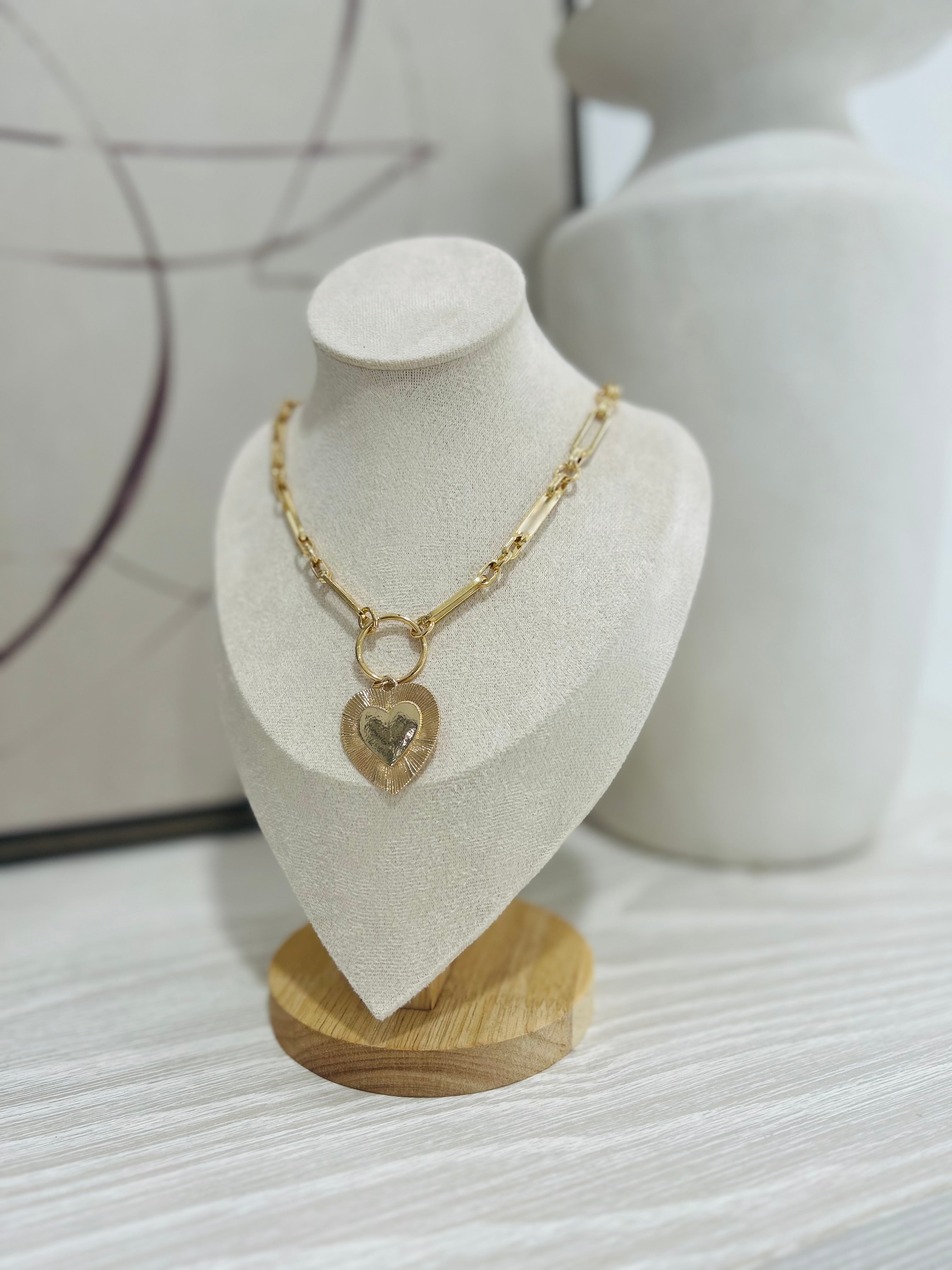 Dare to make a bold statement with this chunky chain necklace, where an etched heart pendant commands attention. Crafted for those who wear their confidence visibly, this piece layers effortlessly over any look or stands alone as your signature accessory. The substantial chain weight and intricate heart detailing deliver edge with elegance—perfect for anyone ready to turn heads and own the room.