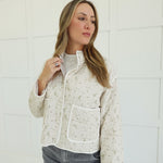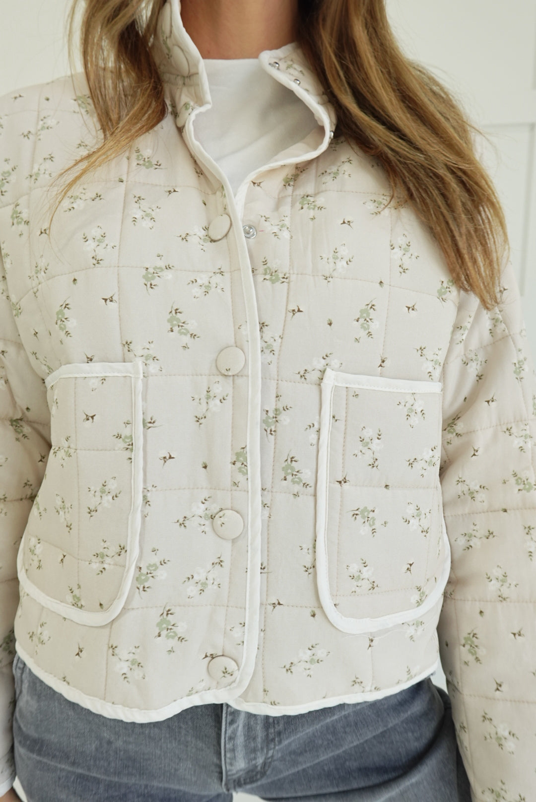 - Quilted Floral Button Down Puffer Jacket