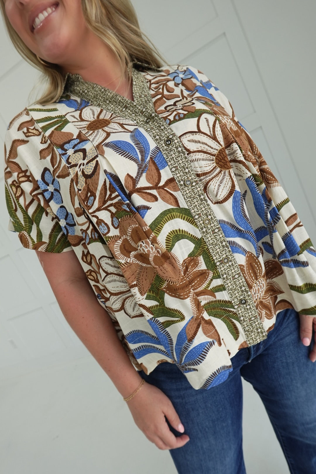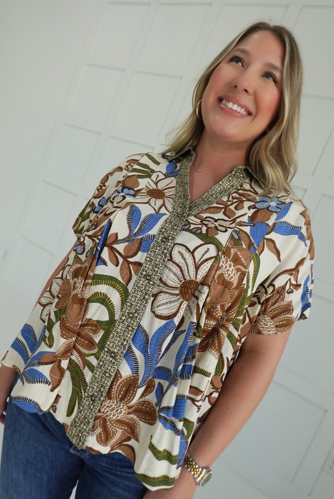The Fall For It Blouse combines mixed prints with thoughtful pleat details for a stylish yet comfortable look. Its button-down design offers easy wear and a polished finish, making it perfect for both workdays and casual outings. This blouse supports your wardrobe with versatile elegance and subtle texture, helping you feel confident and put-together throughout your day.