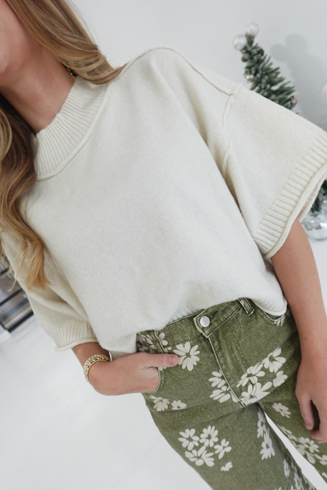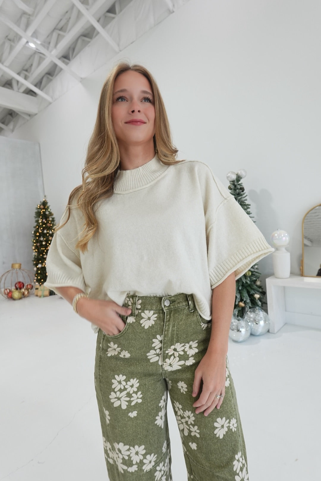 The Fatal Reaction Sweater combines comfort and style with its mock neck and short sleeves, making it an ideal choice for transitional weather. Its soft fabric gently embraces your skin while the mock neck adds a touch of sophistication. Perfect for layering or wearing alone, this sweater supports your everyday comfort without sacrificing a polished look.