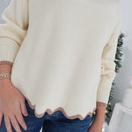 The Fidelity Scallop Sweater in Oatmeal features a delicate scallop trim that adds a touch of refined detail to its soft knit fabric. Its cozy texture ensures comfort while the unique trim offers subtle elegance, making it easy to style for both casual and dressier occasions. This sweater blends warmth with distinctive design, supporting your everyday wardrobe with understated charm.