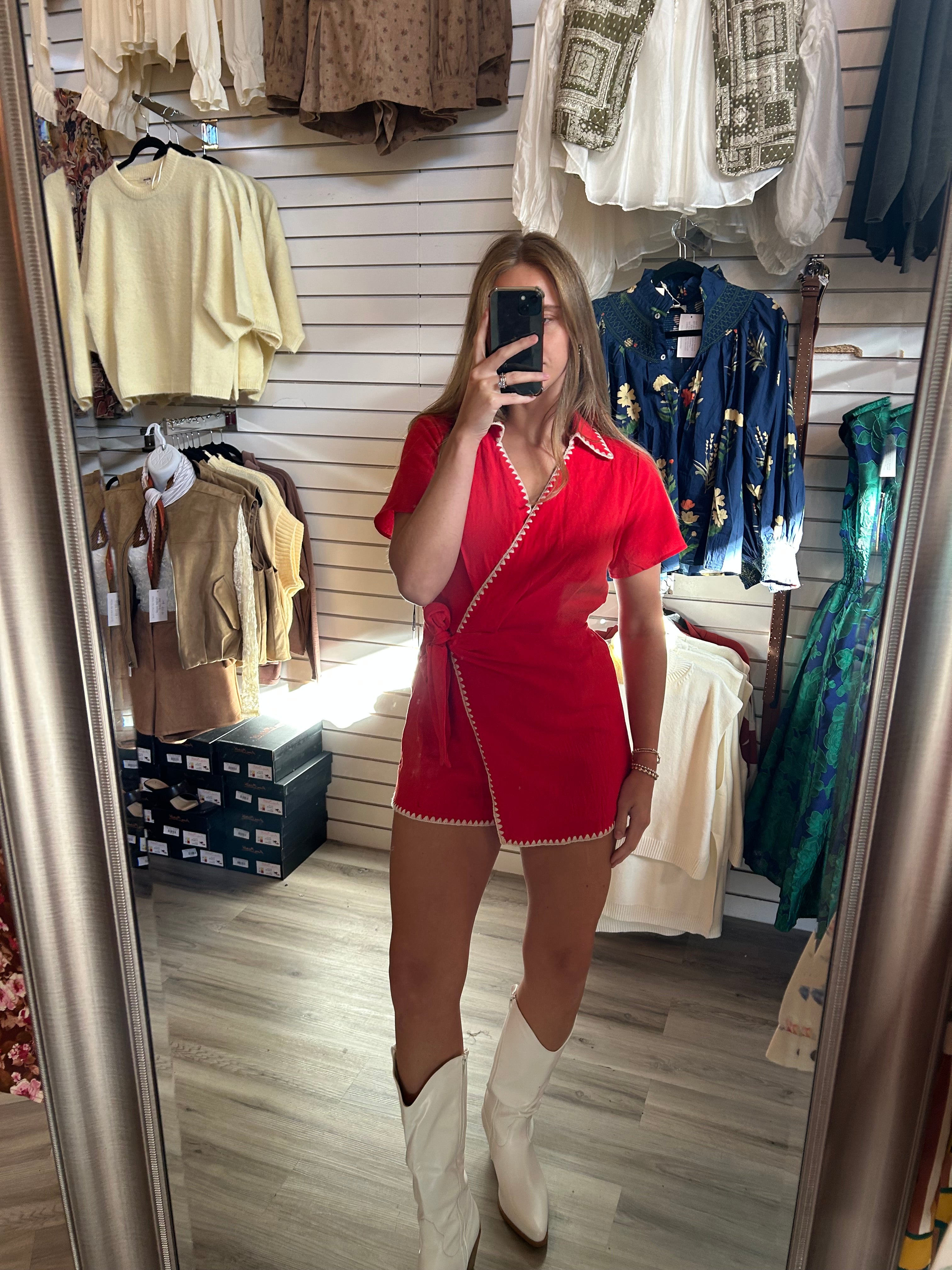 Get ready to romp around in style with the Field Pass Romper! This surplice romper not only features intricate embroidery edges, but also offers a flattering and playful look. Perfect for any casual outing, this romper will have you turning heads and feeling confident.