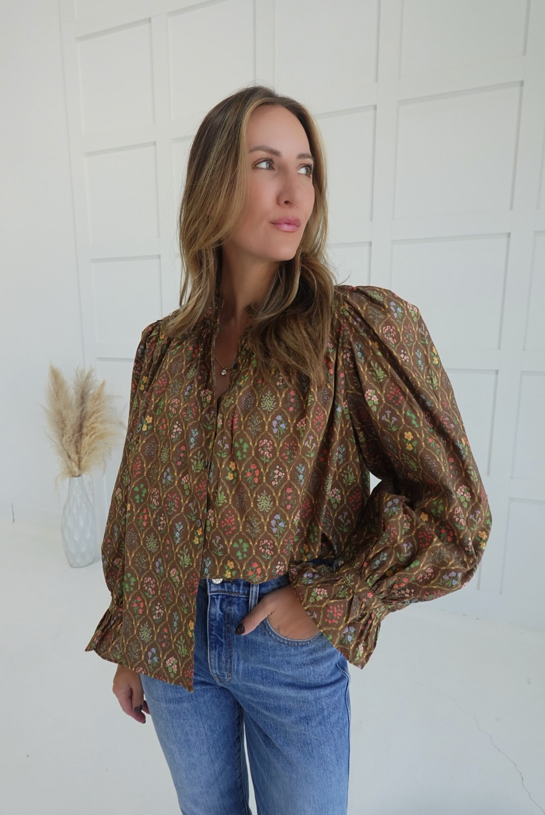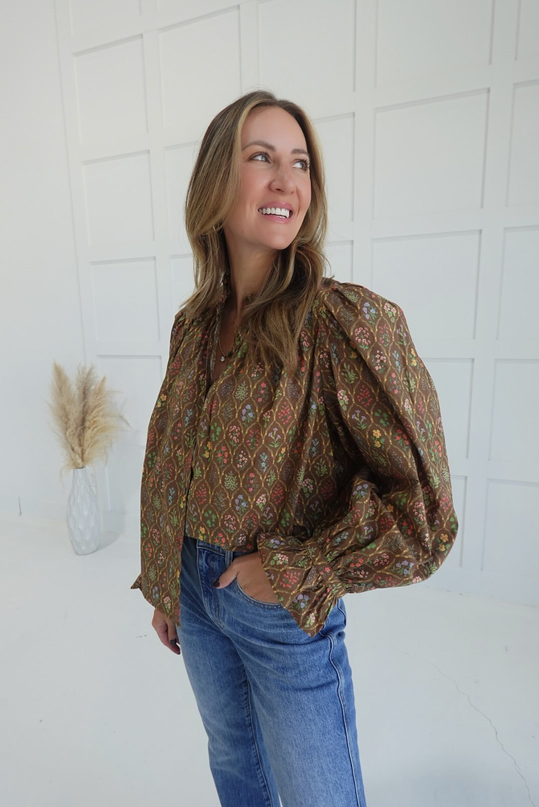 Embrace the season with the Finding Fall Gems Top, designed to bring a touch of elegance to your wardrobe. This lightweight, woven top features a charming multi-floral print and delicate puff sleeves that add a graceful silhouette. The ruffle band collar and sleeve finishes enhance its feminine appeal, while the unlined, non-sheer fabric ensures comfortable wear throughout the day. Perfect for layering or wearing on its own, this top offers both style and ease for your fall adventures.