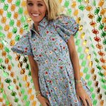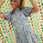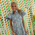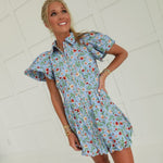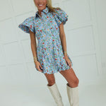 This versatile baby blue floral dress features vibrant red and yellow blooms, making it a standout piece for multiple occasions. The Fiona Zipper Dress transitions effortlessly from casual daytime wear with sneakers or sandals to evening events paired with wedges. Its adaptable design makes it equally suitable for game day celebrations or dinner engagements, offering both style and functionality in one elegant garment.