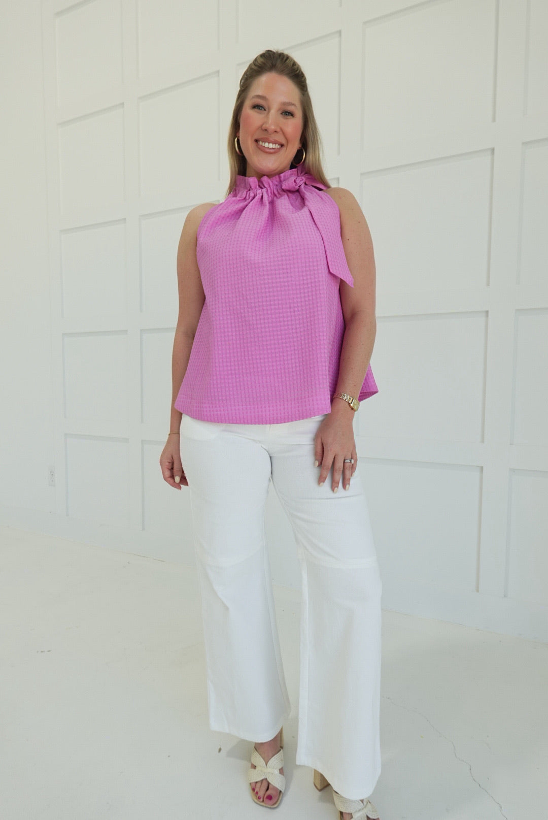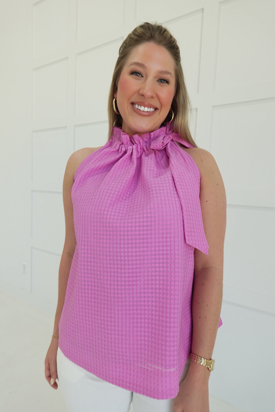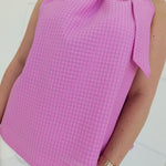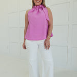 - Sleeveless Top With Ruffle Necktie