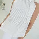 Dare to turn heads in this fearless sleeveless top, where a dramatic ruffle neck commands attention and refuses to blend in. The clean, minimalist silhouette lets the statement neckline take center stage—perfect for those ready to make a bold move. Layer it over basics or wear it solo for an instant confidence boost. Effortless edge meets undeniable charm.