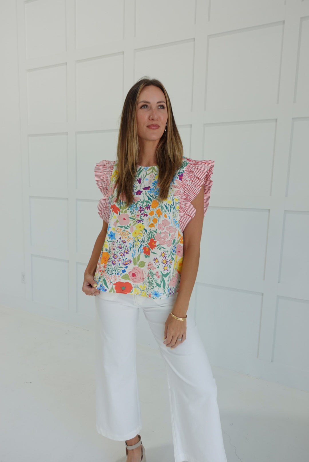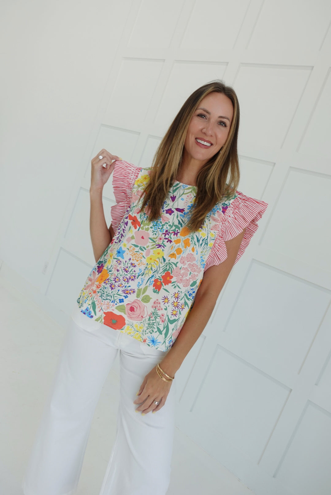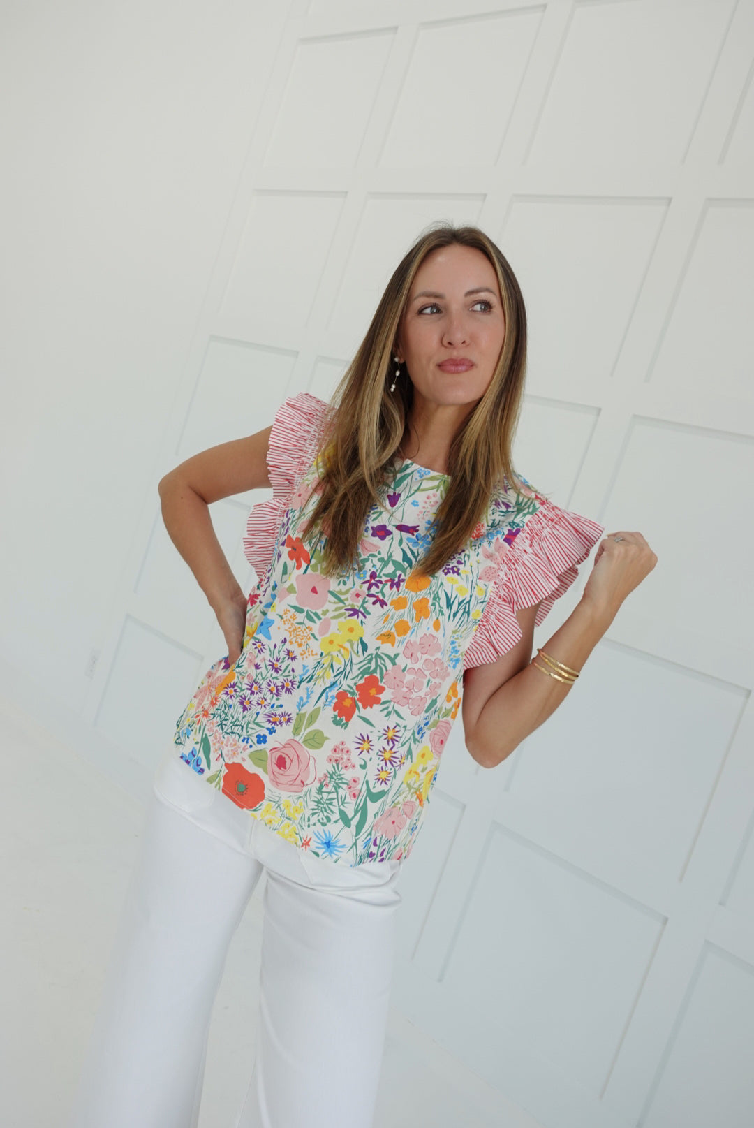- Flirty Floral Top With Ruffled Shoulders