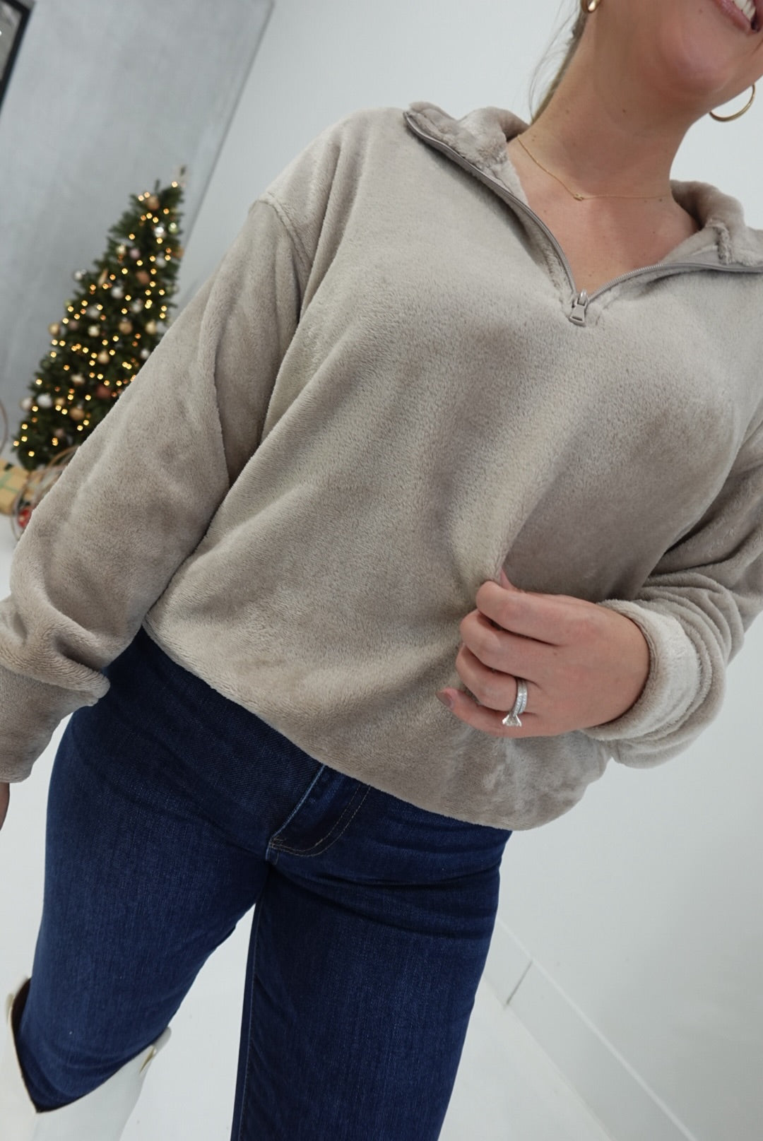 - Faux Fur Half Zip Pullover