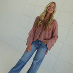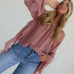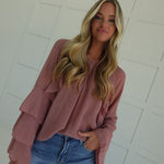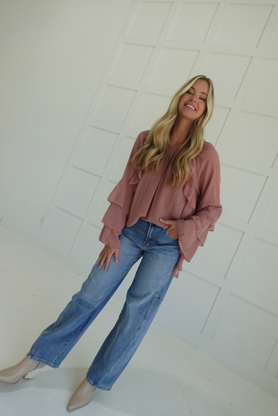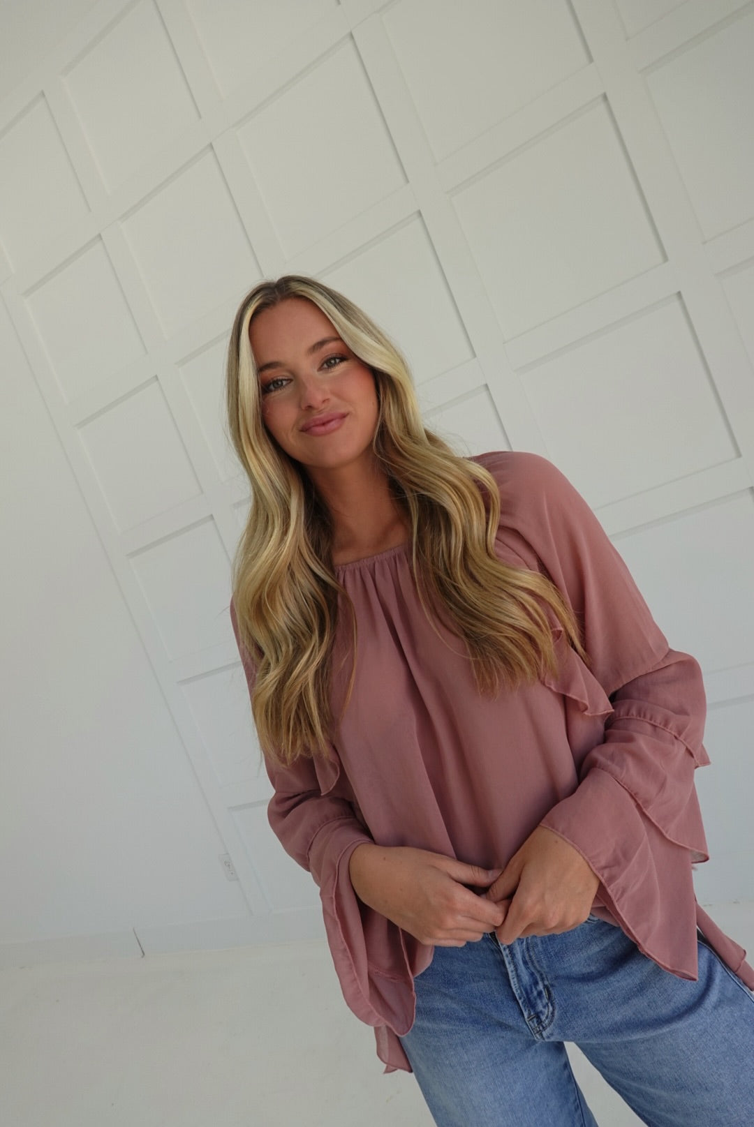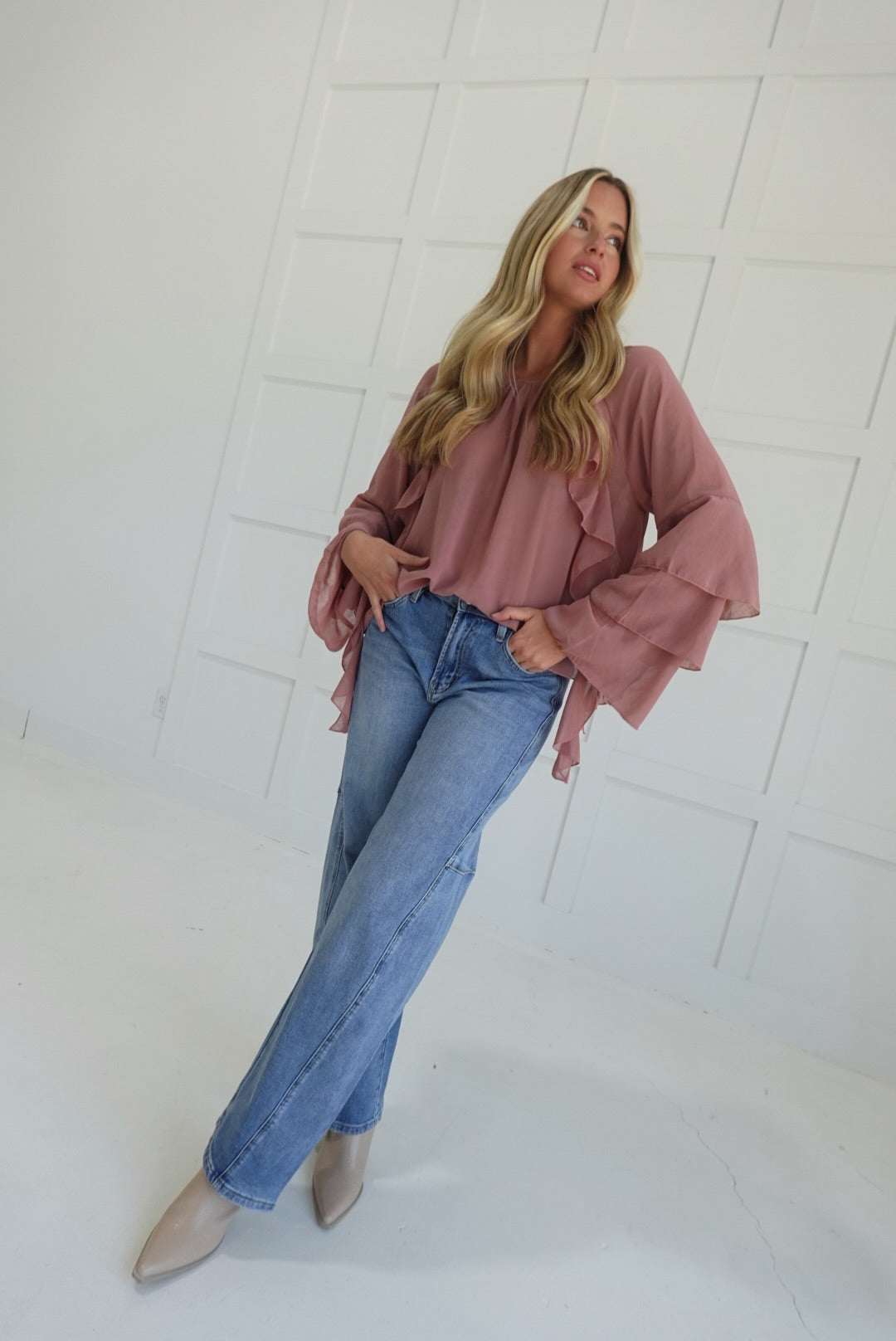 Elevate your wardrobe with the For the Frill of It Blouse, designed with delicate chiffon fabric and charming ruffle details that add a graceful touch. The bell sleeves create a flowing silhouette, offering both comfort and style for any occasion. Perfect for layering or wearing on its own, this blouse enhances your look with effortless femininity and movement.