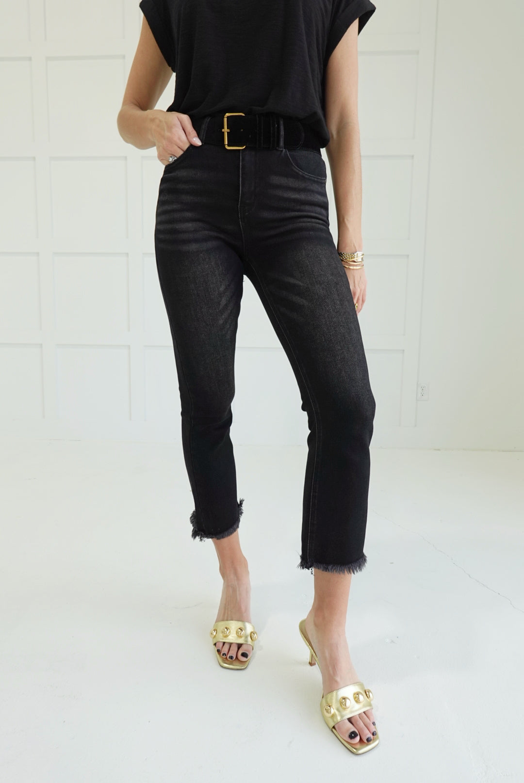 Foreshadow Cropped Jeans deliver bold, unapologetic style with a high-rise silhouette that commands attention. The straight leg cut offers timeless versatility, while the raw hem adds an edgy, unfinished edge that refuses to play it safe. Crafted from quality denim, these cropped pants work equally well styled with heels for an editorial moment or paired down with sneakers for confident, effortless cool. A statement piece that challenges convention.