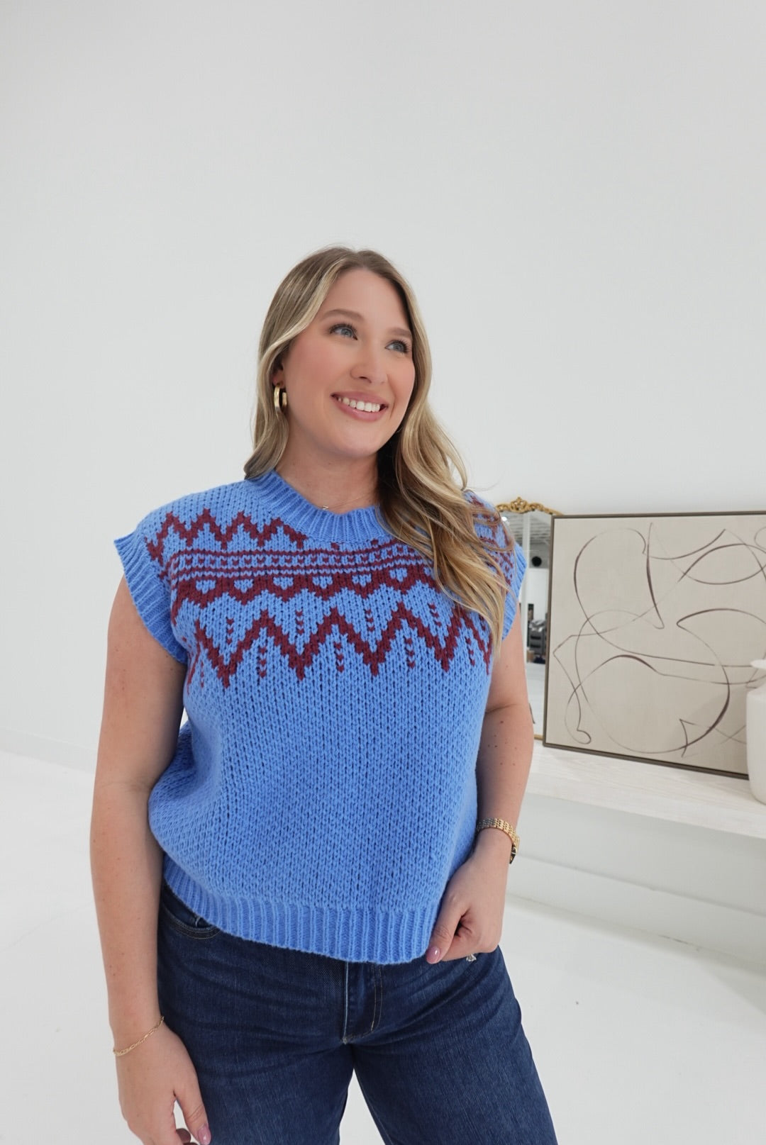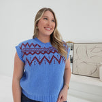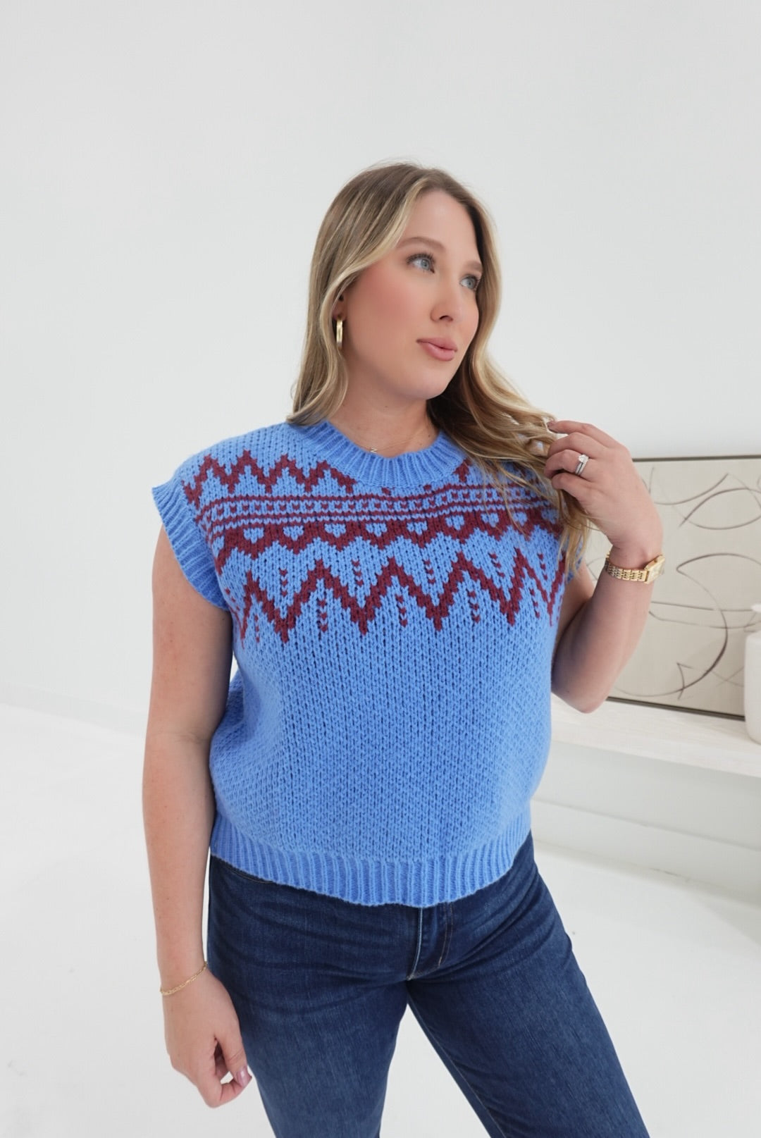 Stay cozy and stylish with the Fosters Knit Sweater, featuring a unique Aztec pattern vest design. Its intricate pattern adds cultural flair while the knit fabric ensures warmth and comfort. Perfect for layering on cooler days, this sweater brings both charm and practicality to your wardrobe.