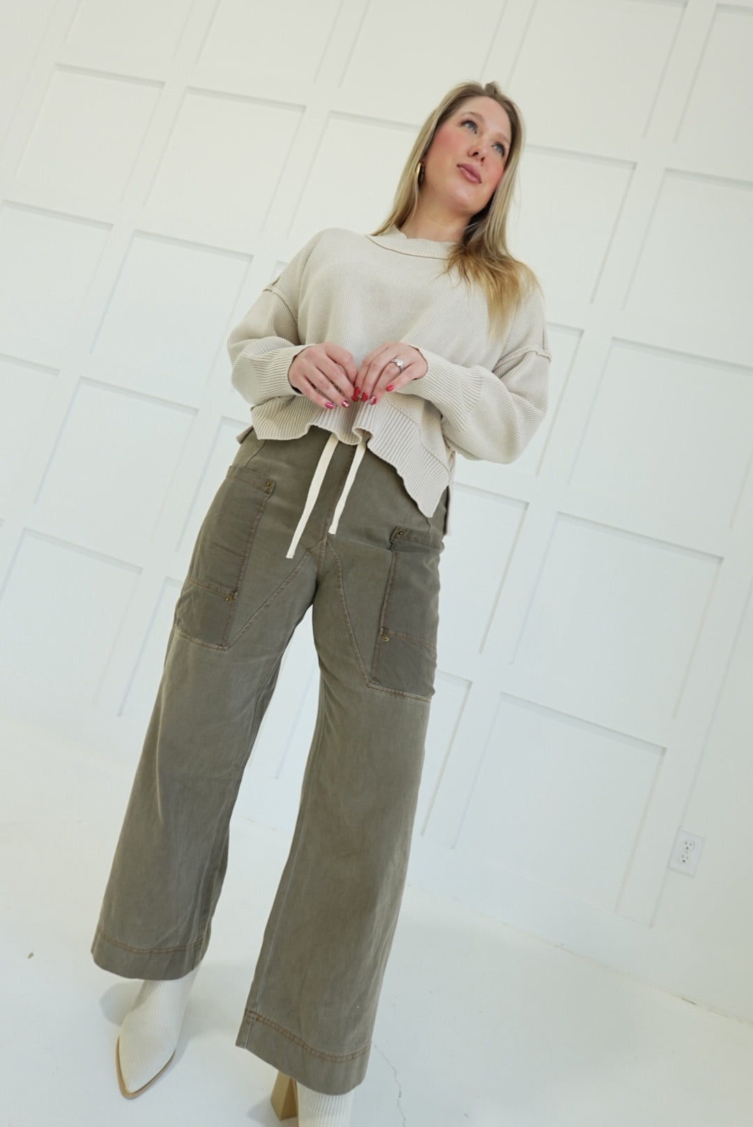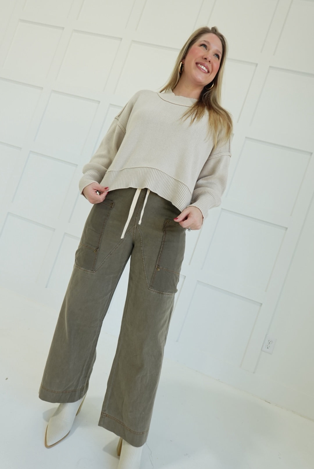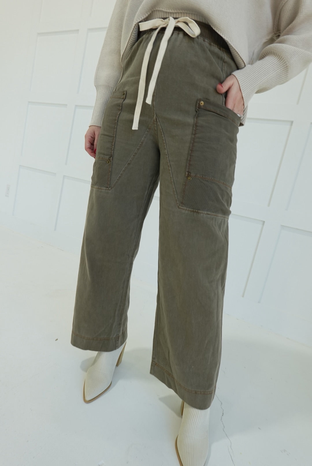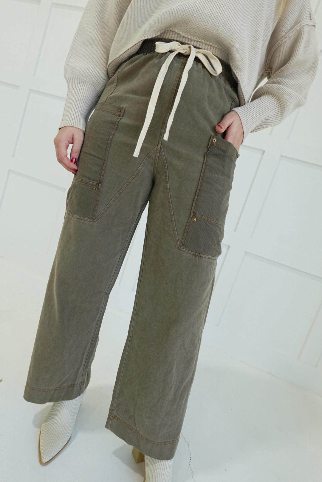 - Side Pocket Pants With Elastic + Tie Waistband