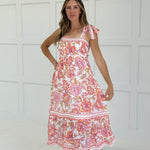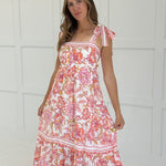 Step into sunshine-filled days with our Francis Floral Midi Dress, showcasing a dreamy watercolor floral print that's truly one-of-a-kind. The thoughtful design includes comfortable tie straps and full lining for both style and practicality. This delightfully versatile piece transitions seamlessly from casual beach outings to festive gatherings, offering that perfect blend of playfulness and sophistication for your most memorable moments.