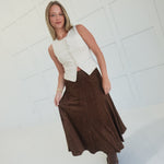 - Suede Flared Midi Skirt