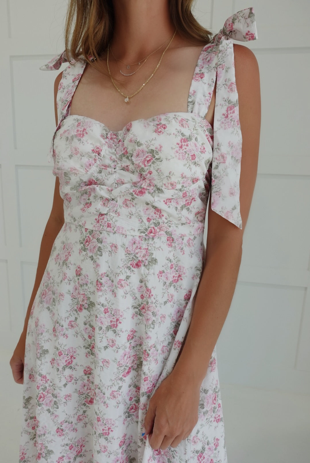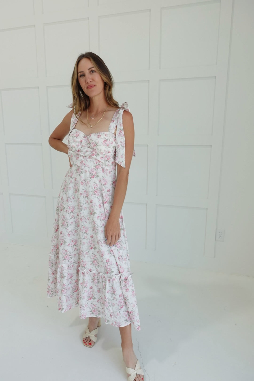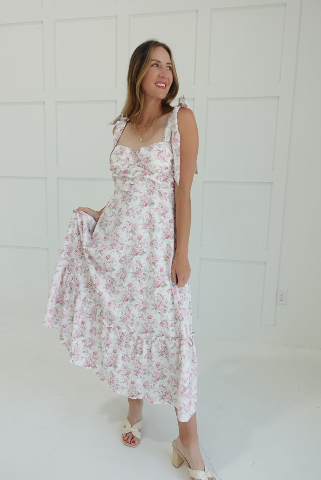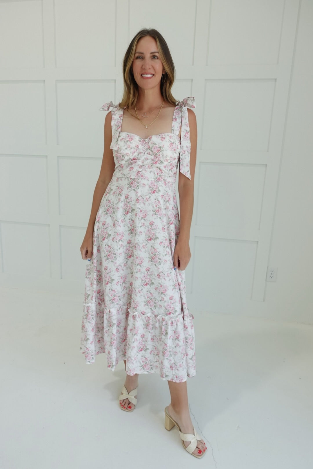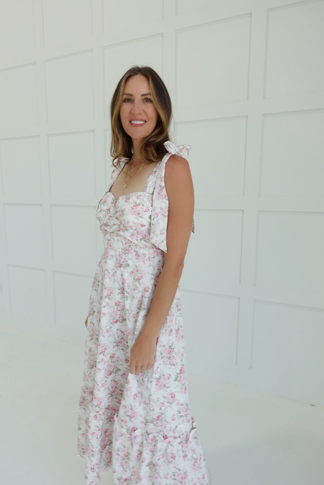 Get ready for a blooming good time in our Garden Party Midi Dress! With its floral tie straps and ruched detailing, this dress is the perfect mix of sweet and sassy. Bring the garden to the party, and let your style blossom with this midi dress.
