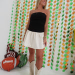 Who needs long sleeves when you can flaunt your arms in our Georgina Mini Dress? This strapless contrast dress is sure to make a statement and show off your figure. Don't miss out on the fun, get yours today!