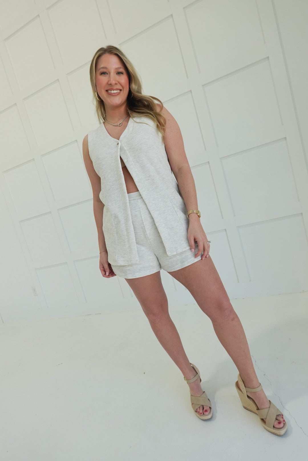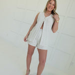 - Pleated Detail Shorts + Sleeveless Tunic Top With Single Button