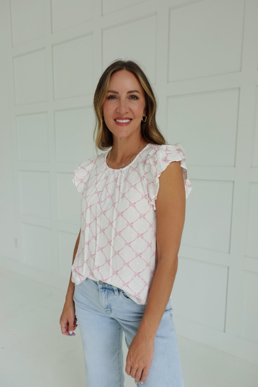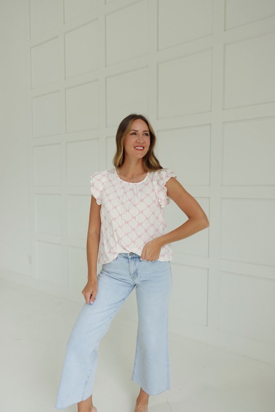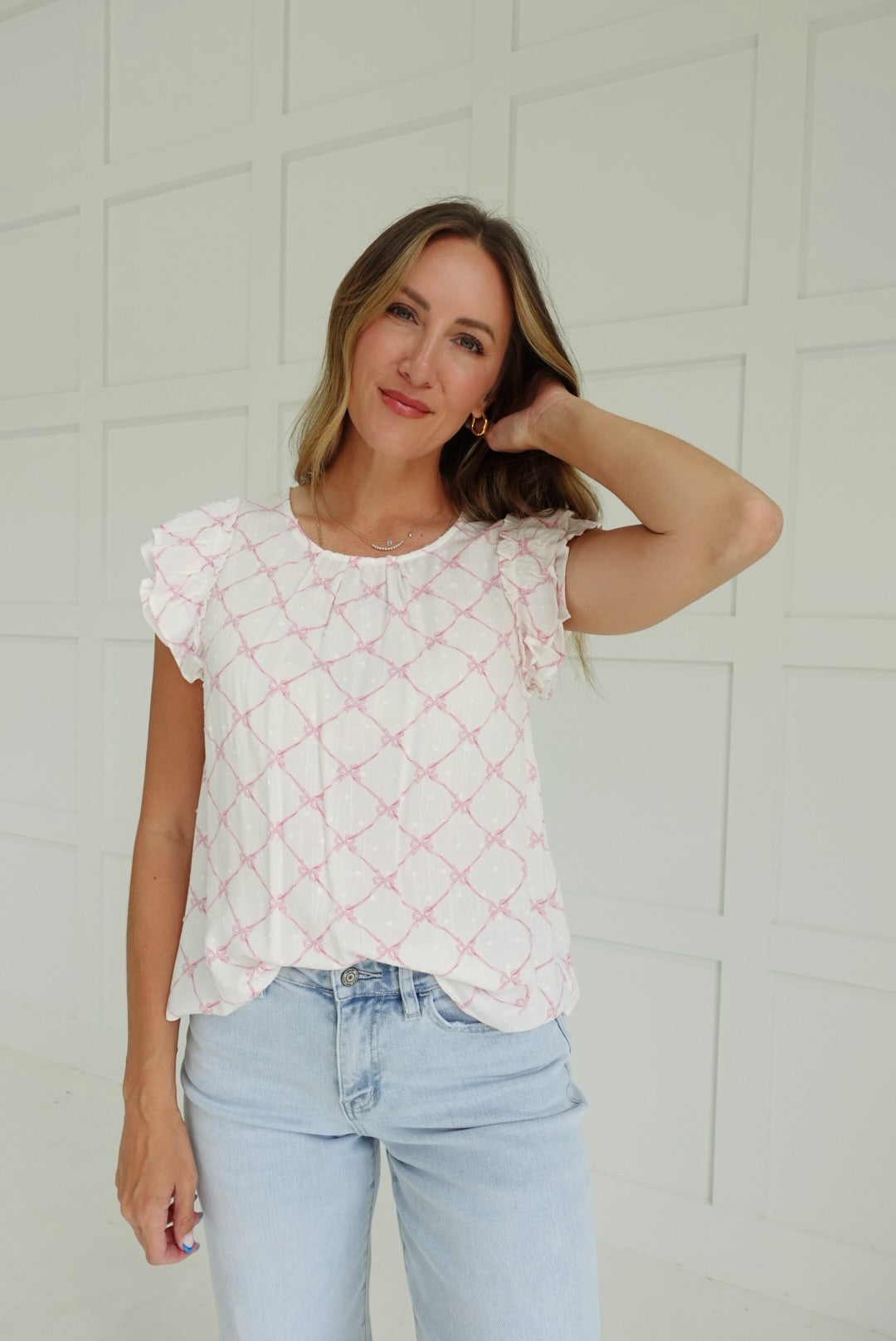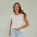 Add a playful pop to your wardrobe with the Give My Love Top! This ruffle top features a cute bow clip and a trendy clip dot pattern. Step up your fashion game with this quirky and adorable top!