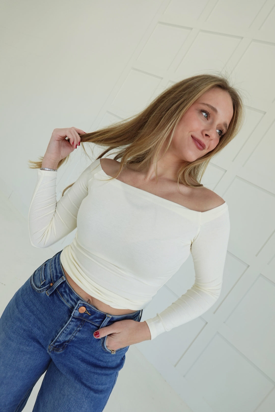 Effortlessly chic and undeniably flattering, the Gone Girl Knit Top in cream is your go-to piece for creating polished, versatile looks. The off-the-shoulder design offers a touch of elegance while keeping you comfortable throughout the day. Crafted from soft knit fabric, this top transitions seamlessly from casual outings to more refined occasions. Layer it with your favorite pieces or wear it solo—either way, you'll feel confident and put-together. A wardrobe essential that celebrates your personal style.