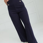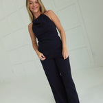 Elevate your wardrobe with the Good Impression Set, featuring a halter cowl neck top paired with A-line hem pants. The gold button accents and front pocket details add a refined touch, making this set both chic and sophisticated. Perfect for making a confident, stylish statement at any occasion.