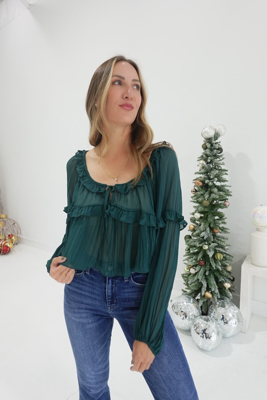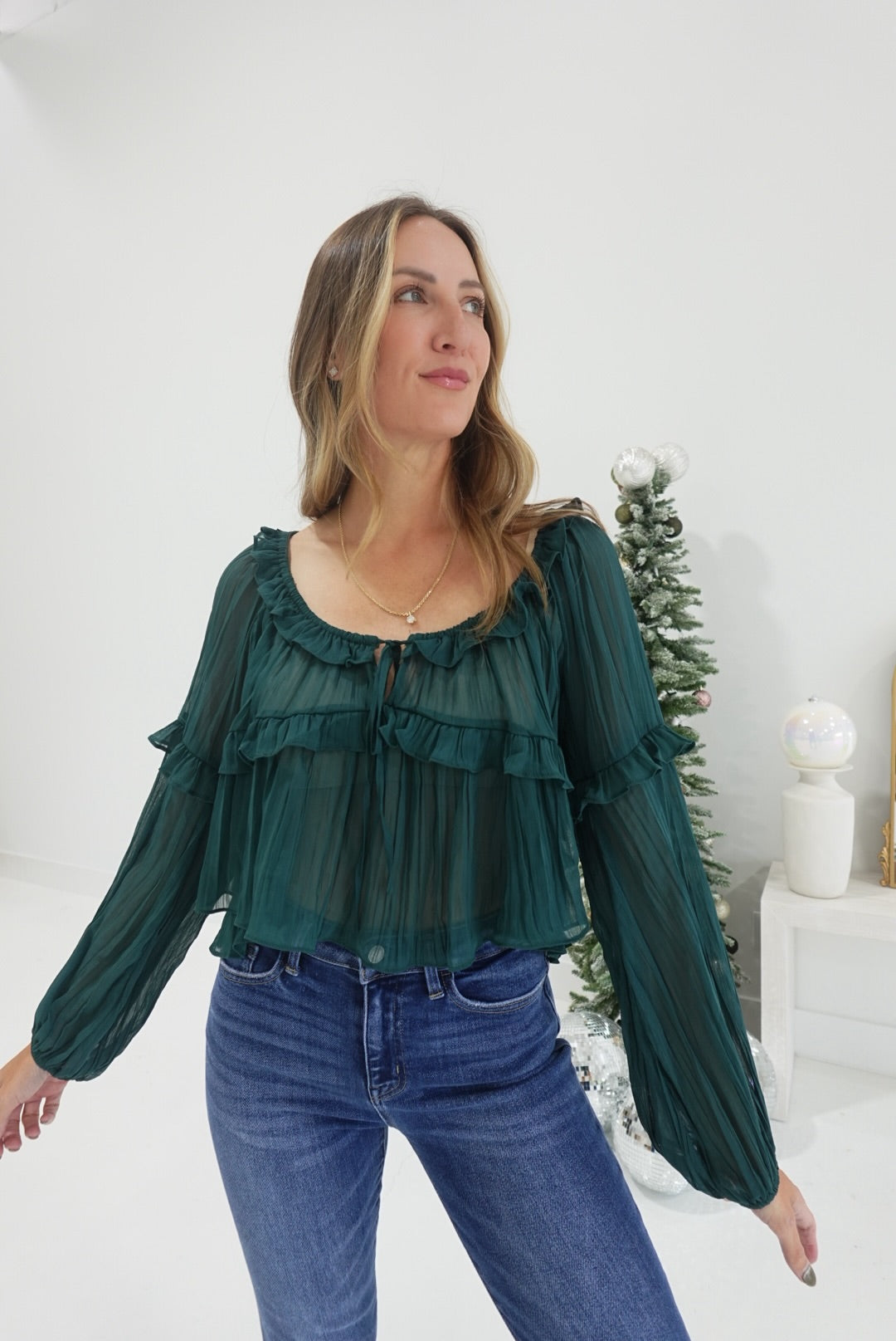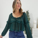 This scoop neck blouse features delicate ruffle detailing that adds a touch of feminine charm to your fall wardrobe. Crafted for comfort and style, it effortlessly pairs with your favorite jeans or skirts for a versatile look that suits any occasion. Embrace the season with a blouse designed to keep you feeling confident.