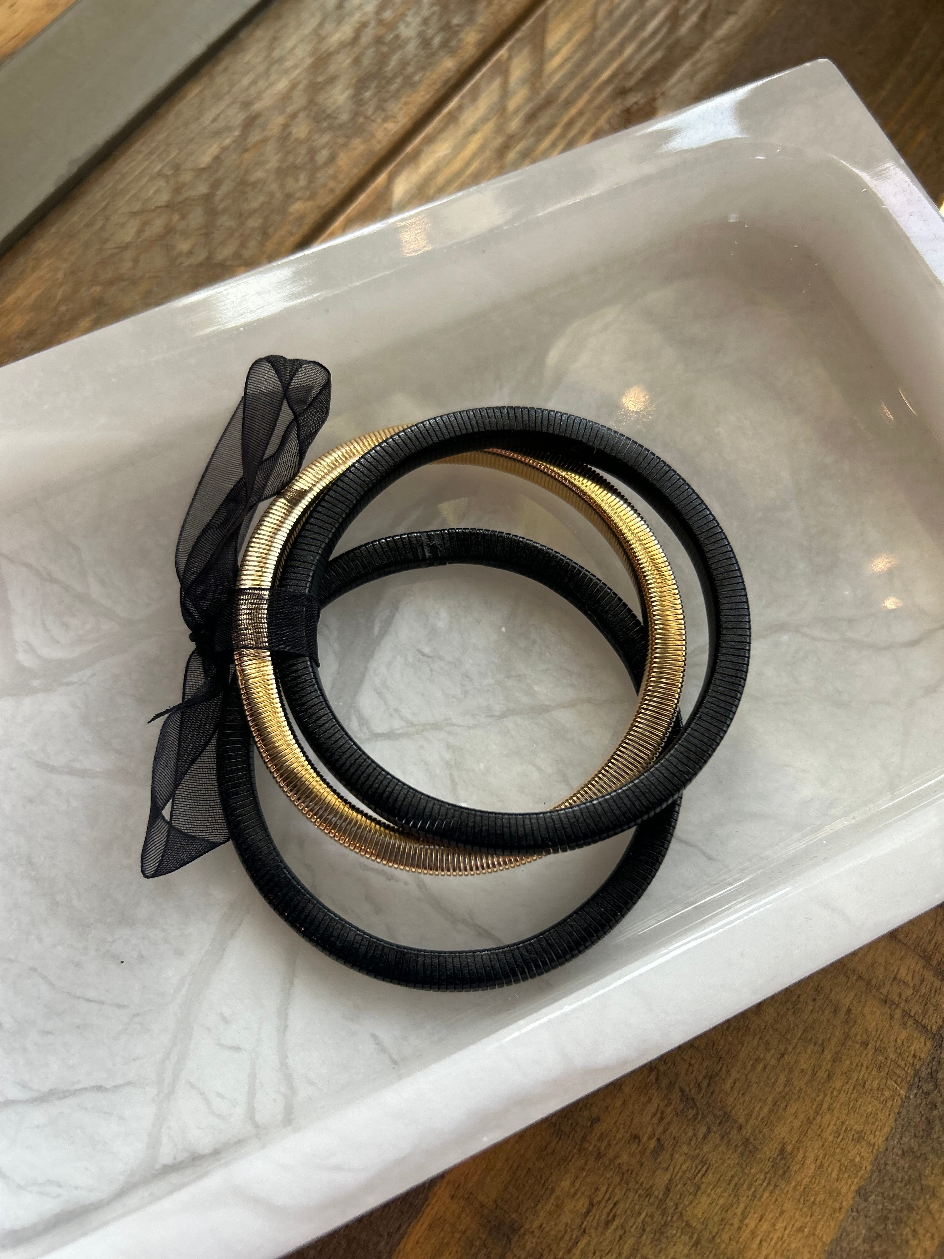 Elevate your style with this black and gold guitar string bracelet set, designed for music lovers and trendsetters alike. Crafted for durability and comfort, these bracelets add a subtle yet striking touch to any outfit. Perfect for expressing your passion for music while keeping a refined look, they make an ideal gift or a personal statement piece for everyday wear.