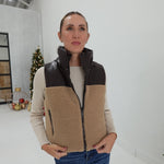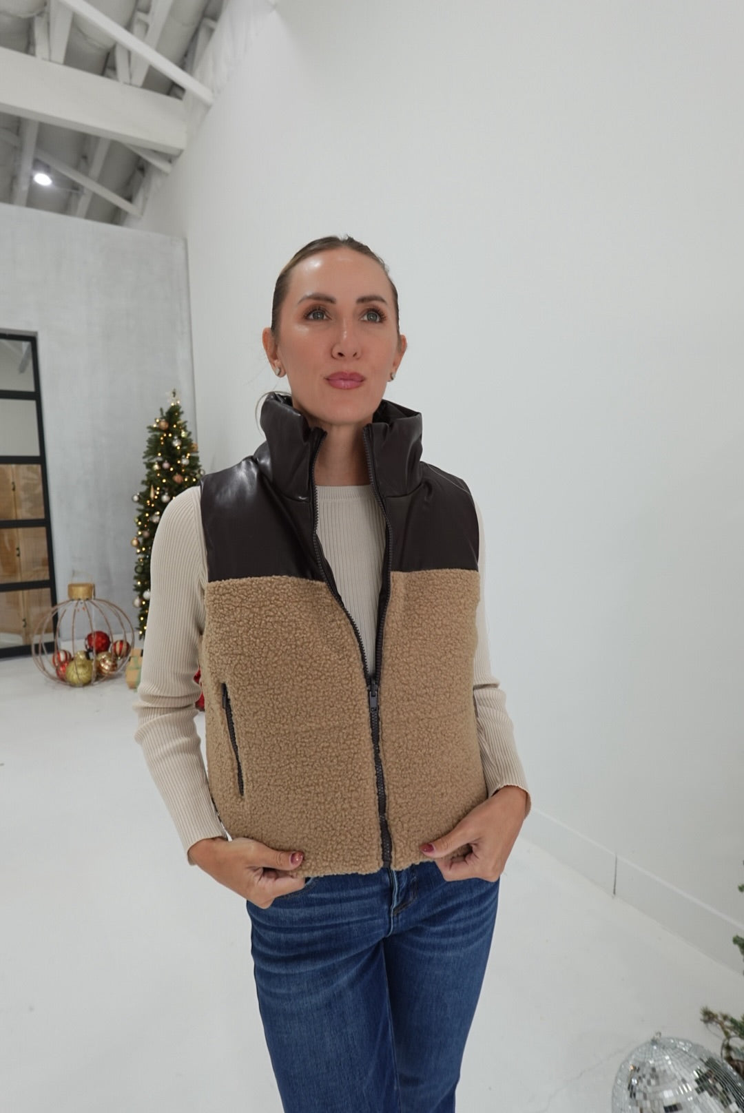 - Faux Leather-Sherpa Contrast Padding Cropped Vest