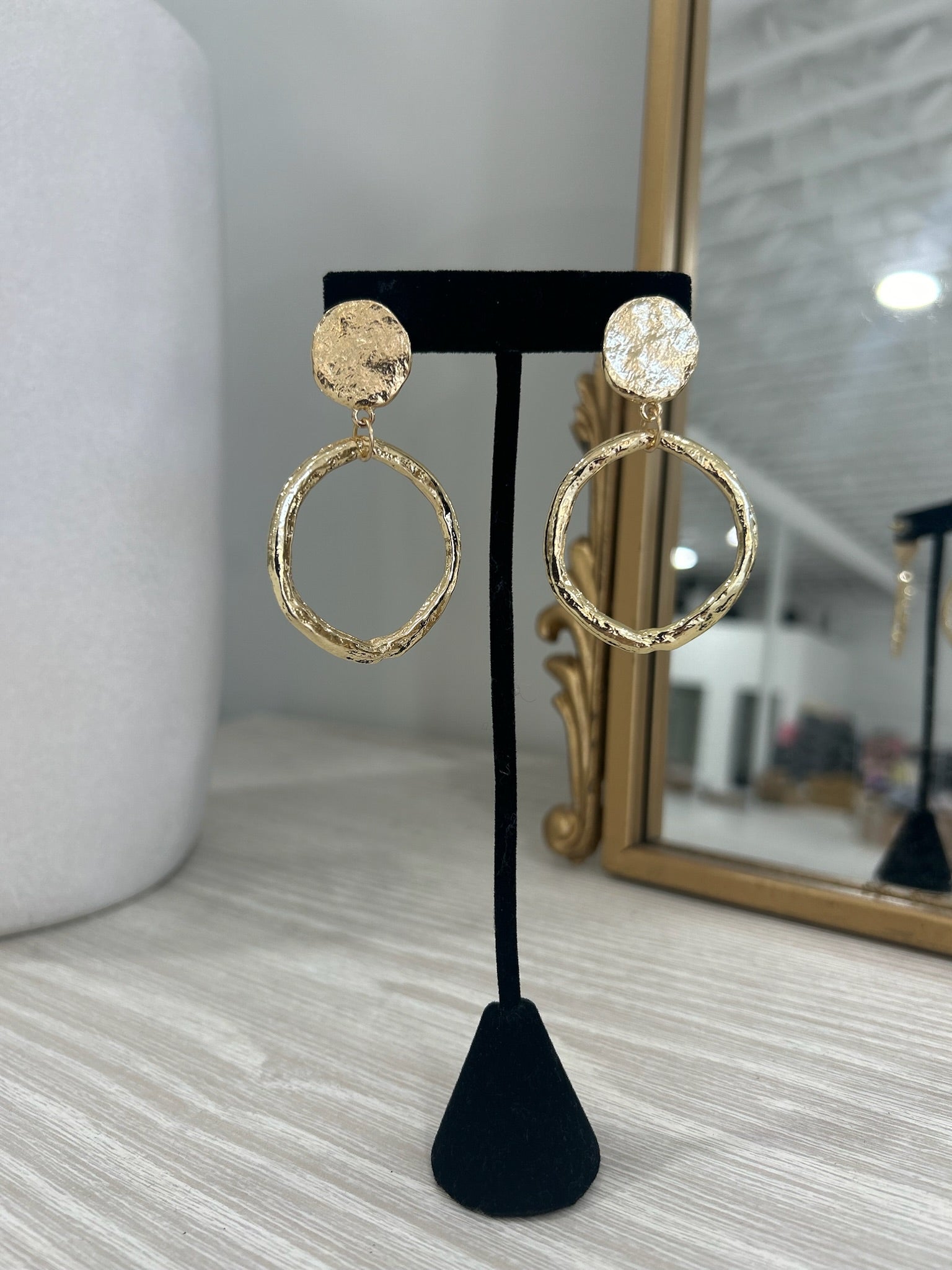 Unleash your bold side with these striking hammered metal drop hoops. Each earring features a textured, hand-forged finish that catches light with every movement, delivering an edgy yet refined look. The dramatic dangle design makes a statement without demanding attention—perfect for those who dare to stand out. Lightweight and versatile, they transition seamlessly from casual to evening wear. Embrace your fearless style with earrings that refuse to blend in.