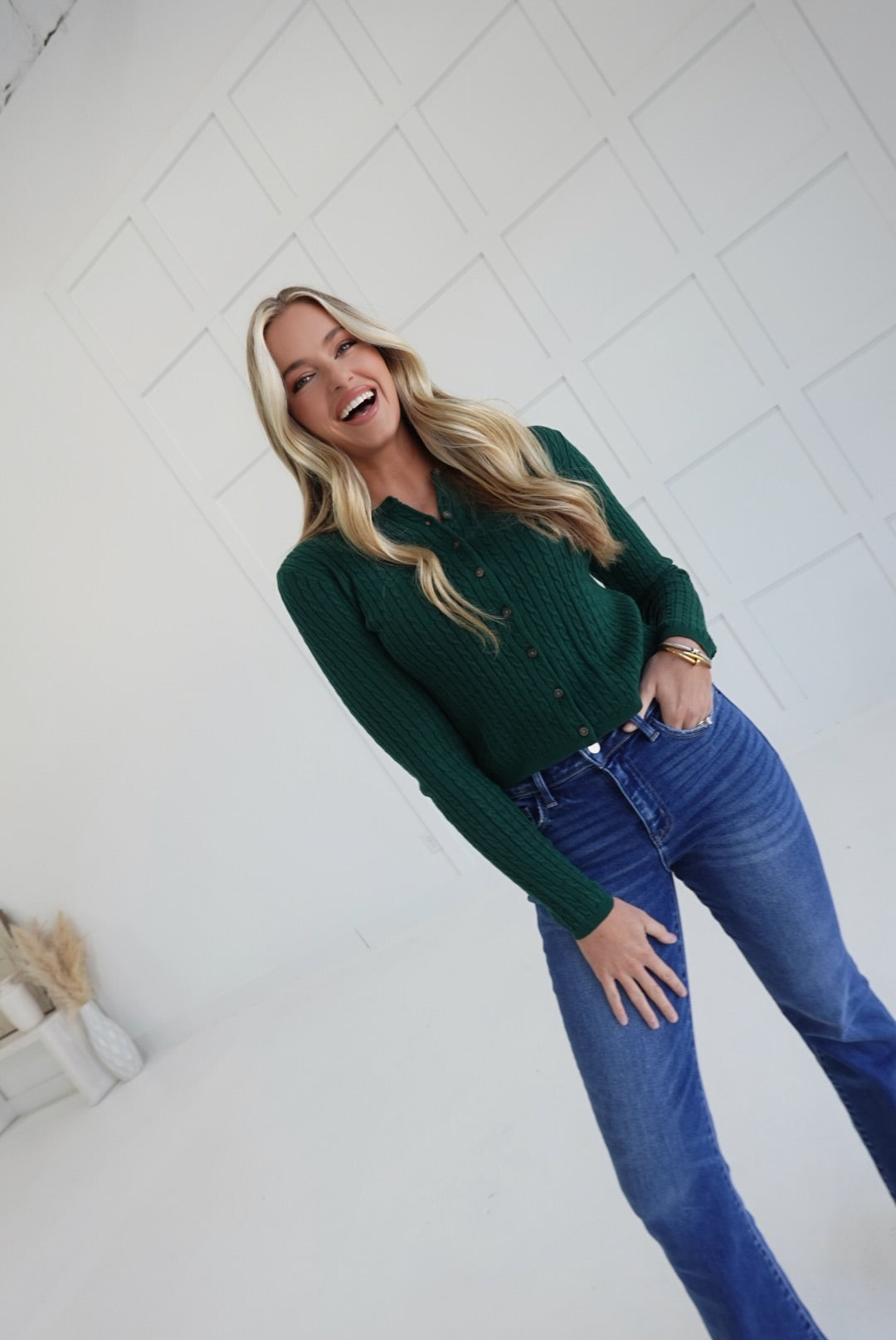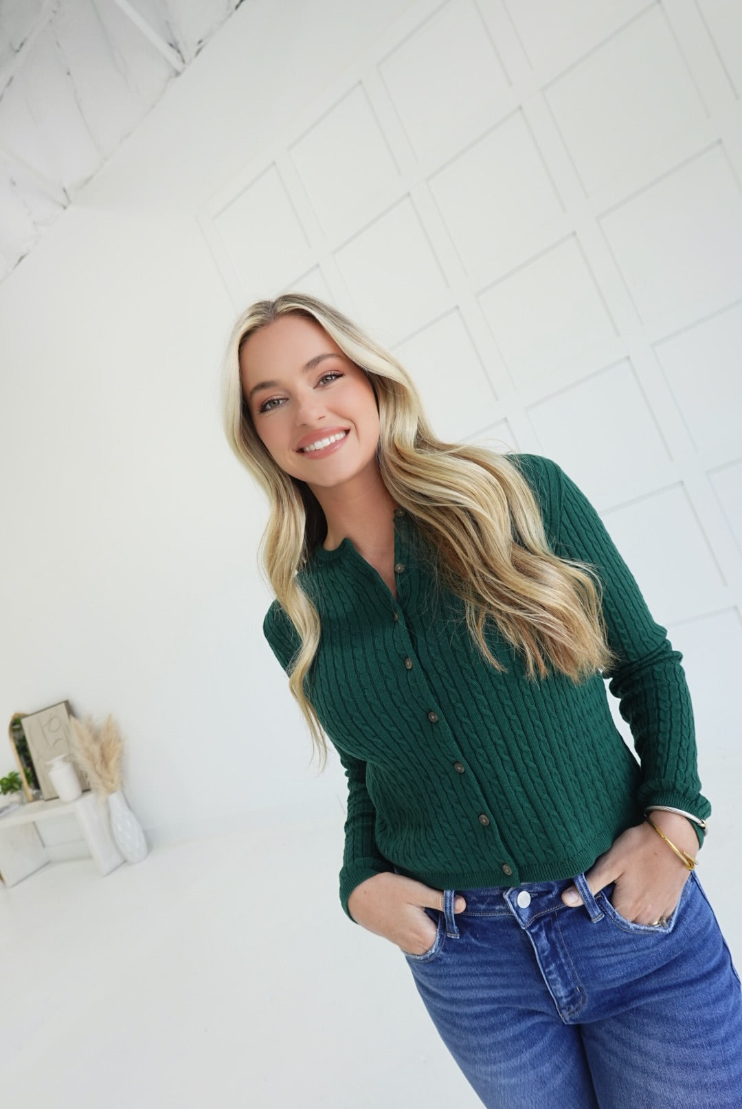 The Harley Cable Knit Cardigan combines classic style with a flattering slim fit to keep you looking polished and confident. Its cable knit design and buttoned front add timeless charm, while long sleeves provide cozy comfort. Perfect for layering, this versatile cardigan easily transitions from casual days to dressed-up occasions, helping you feel poised and put together wherever you go.