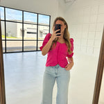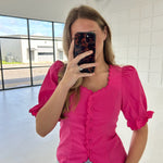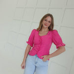 The Harley Scalloped Blouse combines sophisticated design with feminine details. This solid short-sleeved top features an elegant scallop embroidered hem that adds refined texture. The button-down front offers versatile styling options, while the puff sleeves create a flattering silhouette. Perfect for elevating both professional and casual ensembles.