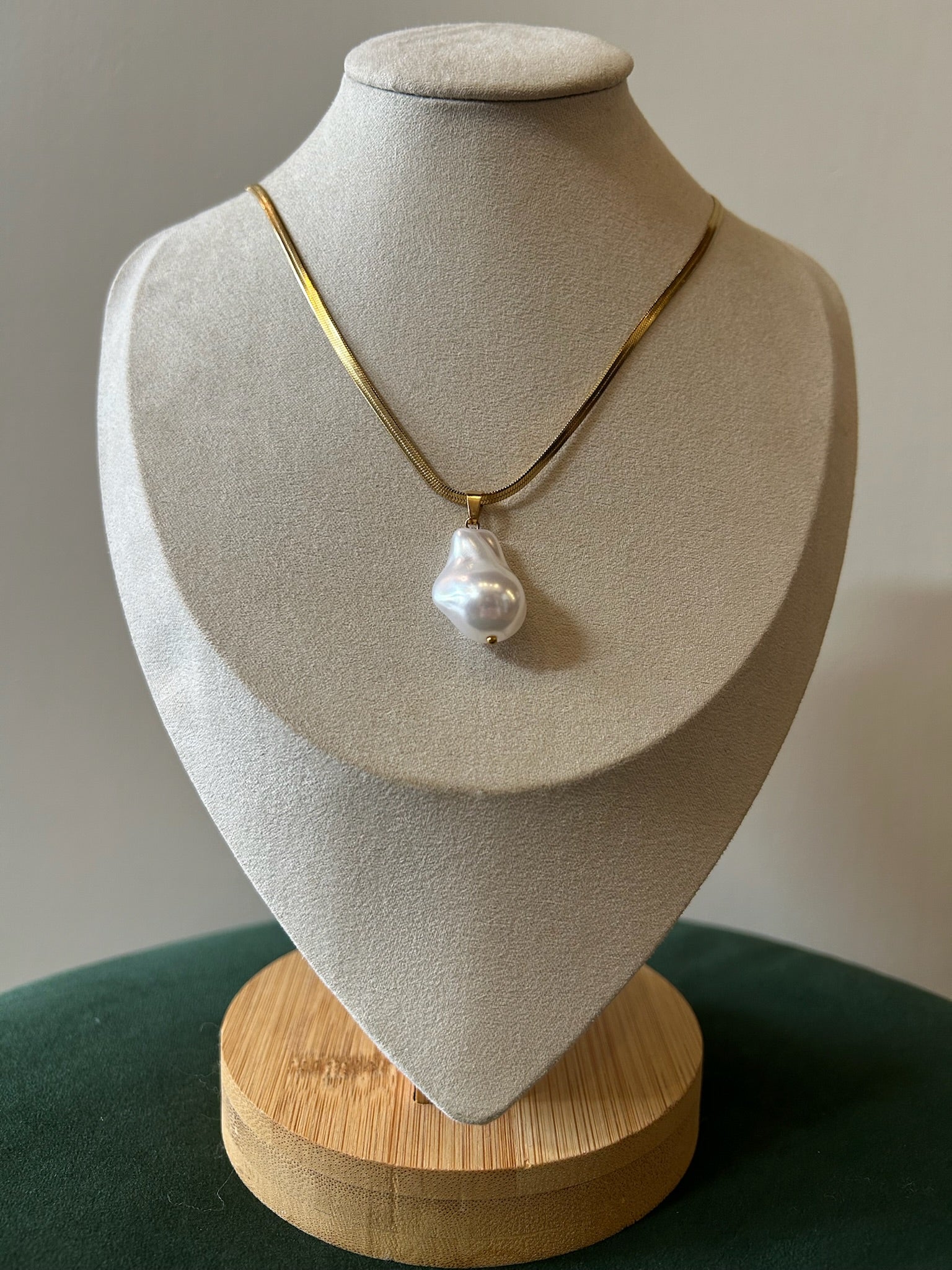 Dare to make a statement with this bold herringbone pearl charm necklace. The interlocking geometric chain catches light with every movement, while the lustrous pearl charm adds an unexpected touch of elegance. Perfect for those who refuse to play it safe—layer it, wear it solo, or let it be the conversation starter your outfit needs. Timeless meets fearless.