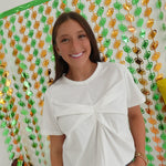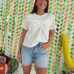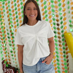 The Holt Detail Top combines casual comfort with elevated design. This short-sleeve t-shirt features elegant pleated detailing that creates a flattering silhouette. The soft knit fabric and round neckline offer everyday wearability, while the thoughtful front pleats add just enough visual interest to elevate your summer wardrobe. Perfect for effortless style that transitions seamlessly from day to evening.