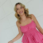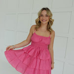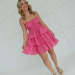 Get ready to make a statement in our Honor Roll Dress! This playful mini dress features adjustable spaghetti straps, a smocked waist, and a front tie detail to flatter your figure. The ruffle tiered design adds a touch of whimsy, making it perfect for concerts, cookouts, or casual parties. Don't miss out on this must-have piece!